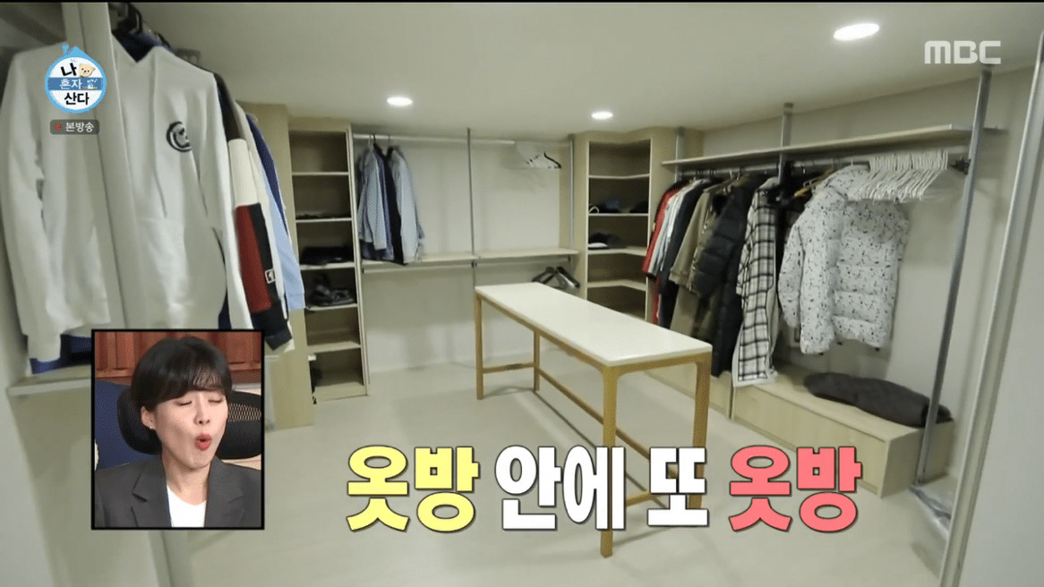 방안에 방같은 개념의 쪽방이 많아서 기준이 애매하니어디까지가 방 한개인지 키 본인도 잘 모르겠다고 말하네요. 침실 영화방 드레스룸 드레스룸안에 또옷방 숨겨진 또다른방등 정말 방도 엄청나게 많네요. 거실빼고 6개인듯 처럼 보이는데요. 침실, 책꽂이있는방, 영화방, 큰옷방, 큰옷방안에 작은옷방, 작은옷방지나 아지트같은방