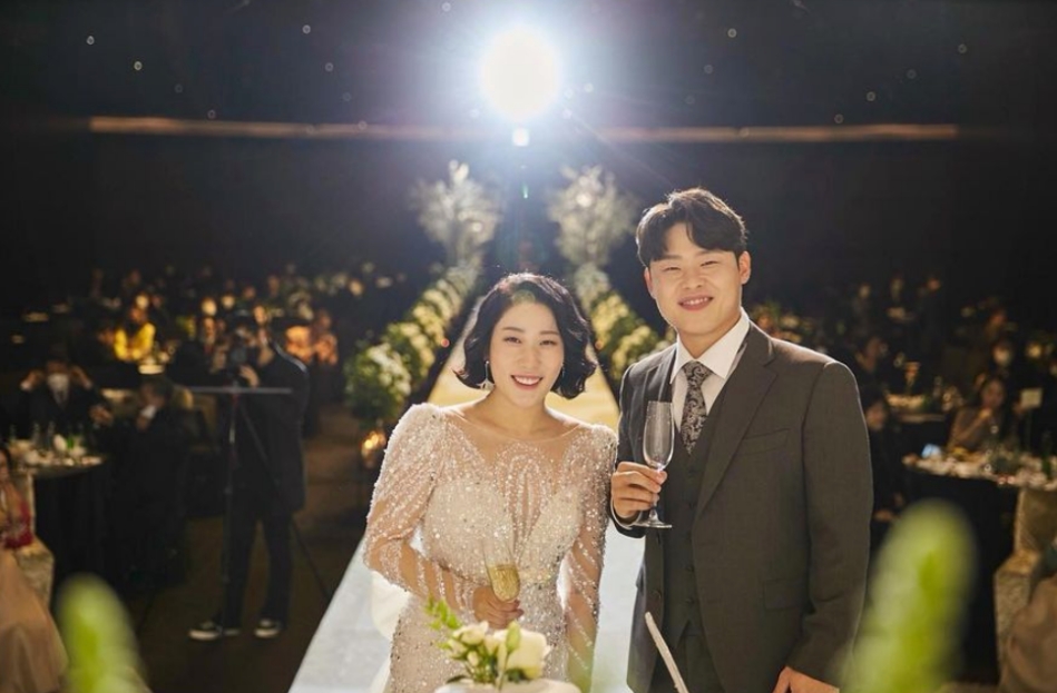 김영희는 10살 연하의 야구선수 윤승열과 2020녀에 결혼식을 올렸습니다.