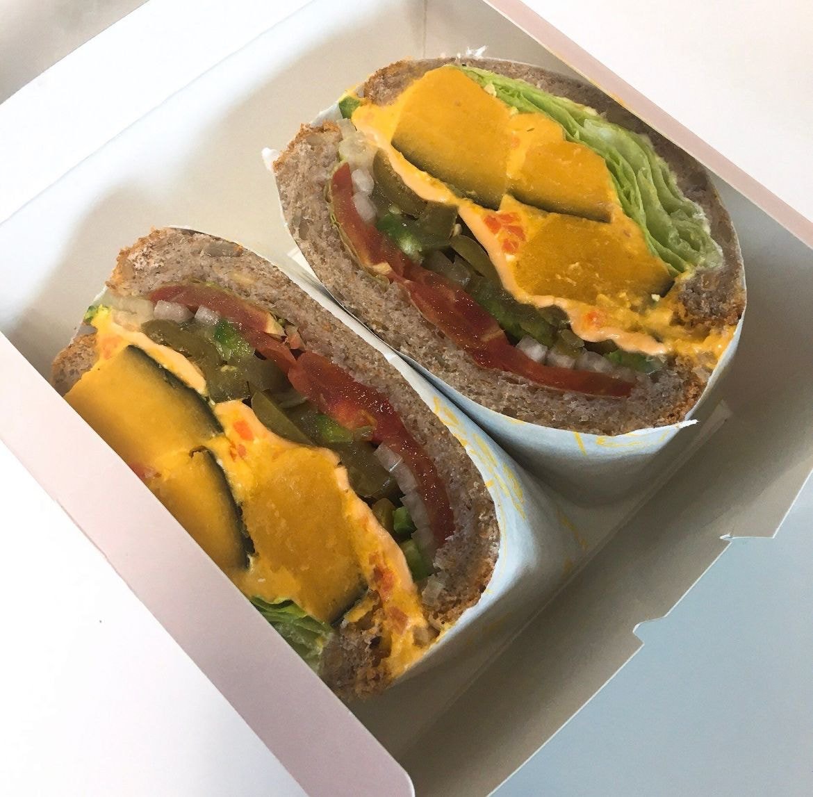 박스 디자인 패키지가 달라지면서 예전엔 박스에 꽉 찼던 샌드위치가 지금은 넉넉하게 들어가 있는 상황인데요. 해당카페 배달 후기을 봐도 수차례 재주문했던 고객들도 다 패키지 디자인 바뀌었다고 아는체만 하지 내용물이 변했다는 말은 한마디도 없었는데요.