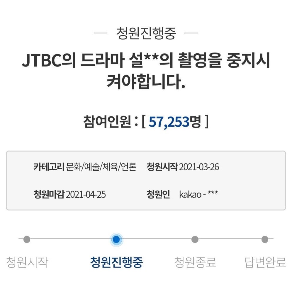 설강화 촬영 중지 청원