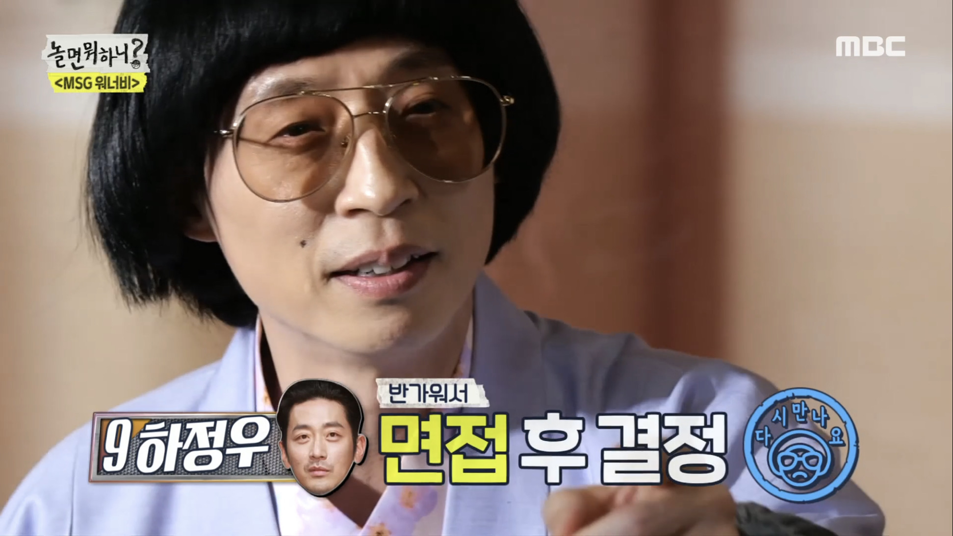 마지막 지원자 하정우의 노래를 듣자마자 유야호는 지원자의 정체를 알아차리며 우선 너무 반가운 목소리라며 하정우를 면접 후 결정하겠다며 합격시켰습니다.