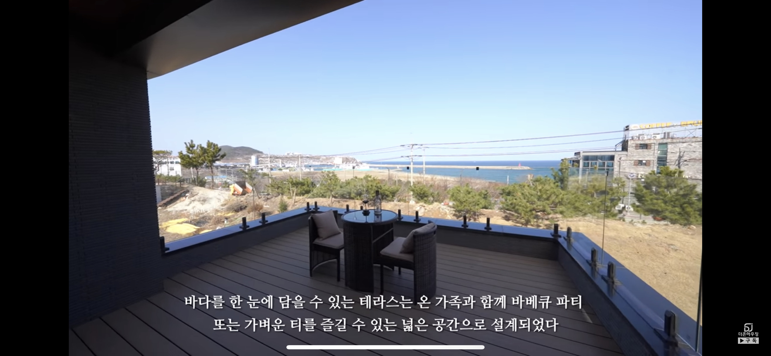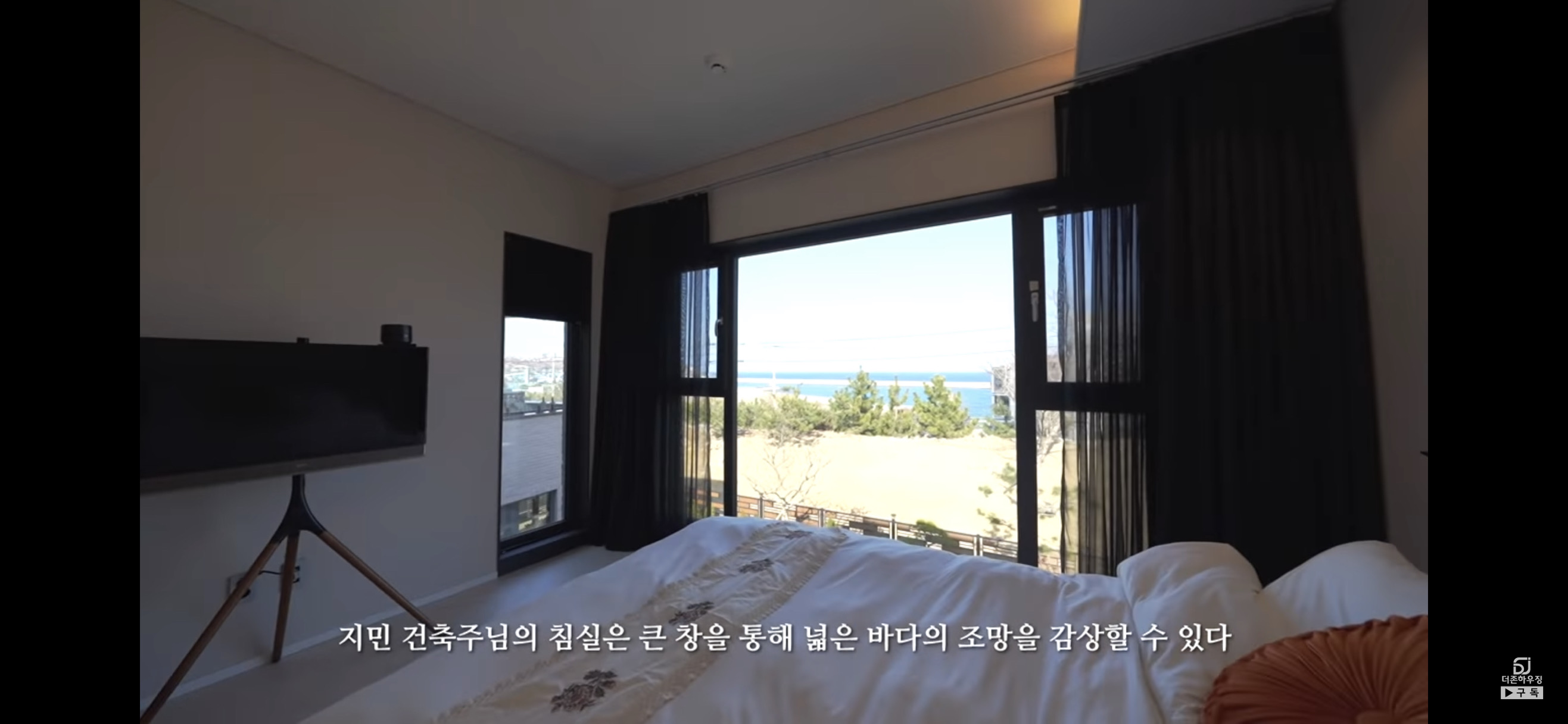바다가 바로 보이는 좋은 위치에 자리한 필지로 조망 부분에 중점을 두어 계획한 단독주택은 1층은 중정을 두어 가족만을 위한 안락한 가든 뷰, 2층에 올라오면 바로 확 트인 동해바다가 보이는 최고의 오션 뷰를 설계, 김지민은 조망 부분에 가장 신경을 많이 썼다고 합니다.