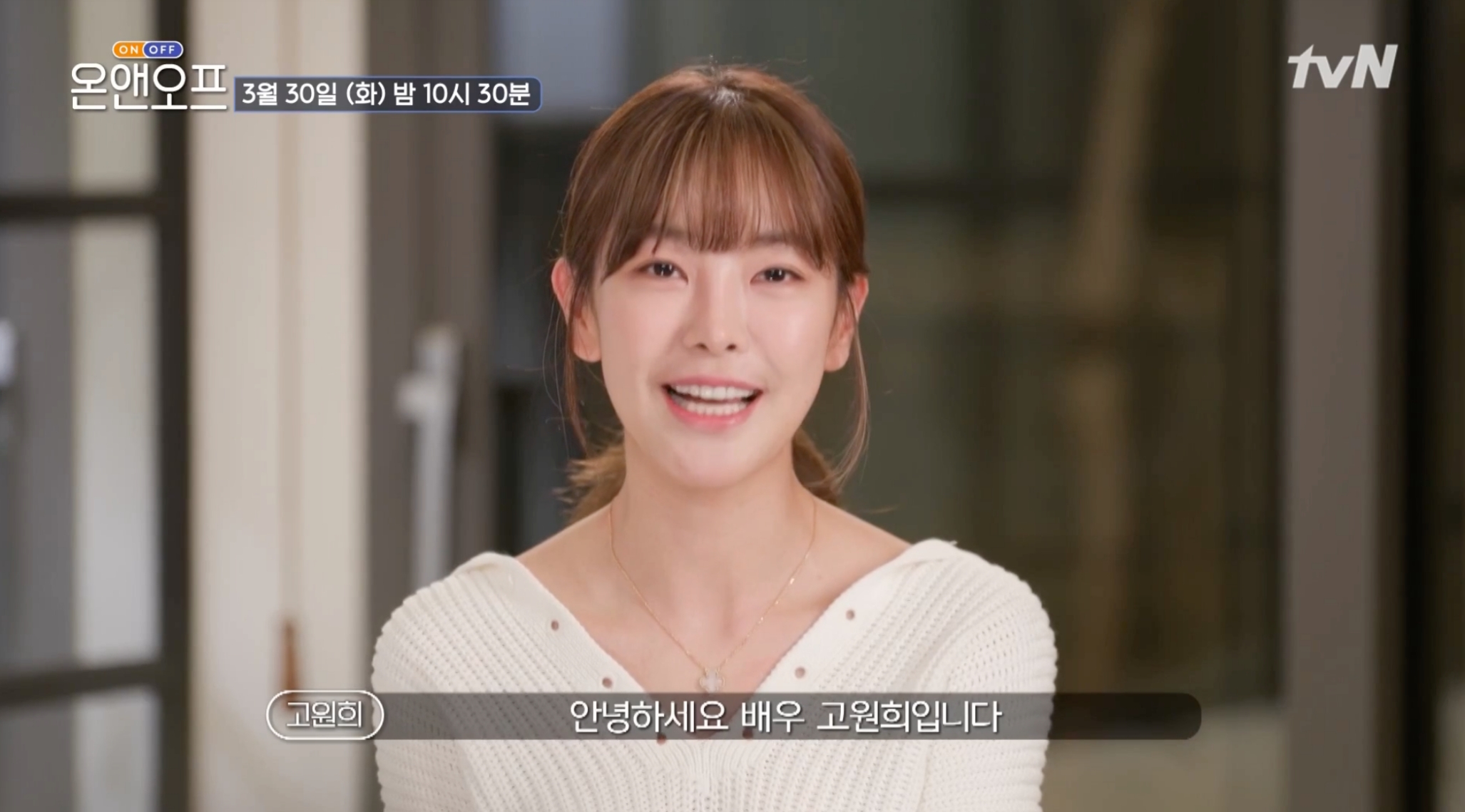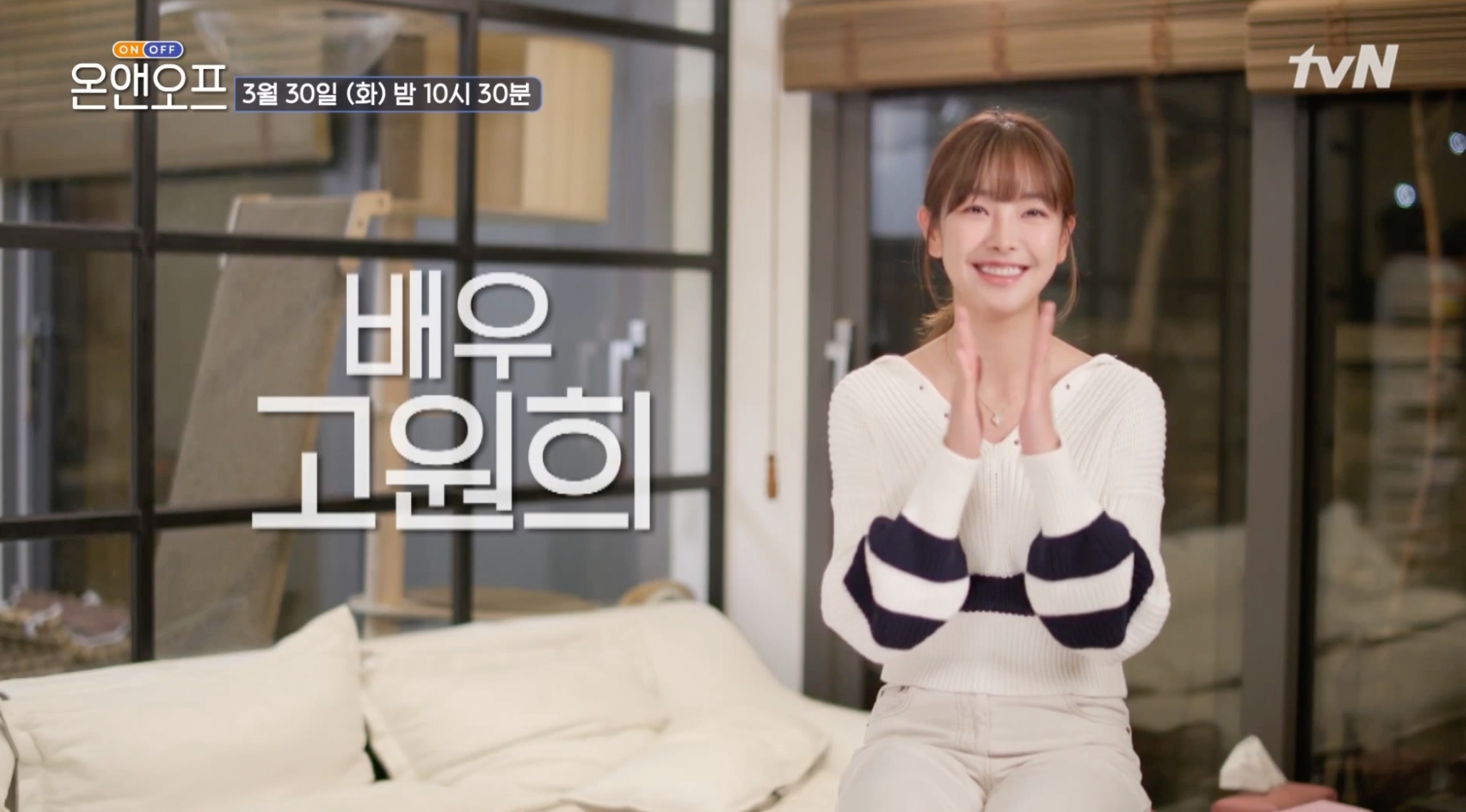 배우 고원희가 배우의 일상인 온(ON)과 다양한 오프(OFF) 활동을 방송 최초로 공개 합니다. 3월 30일 방송되는 tvN 온앤오프 에서는 요즘 흥행가도를 달리고 있는 고원희가 KBS 2TV주말드라마 오케이 광자매 촬영 현장에서 막내딸 이광태 역활로써의 온을 공개합니다.