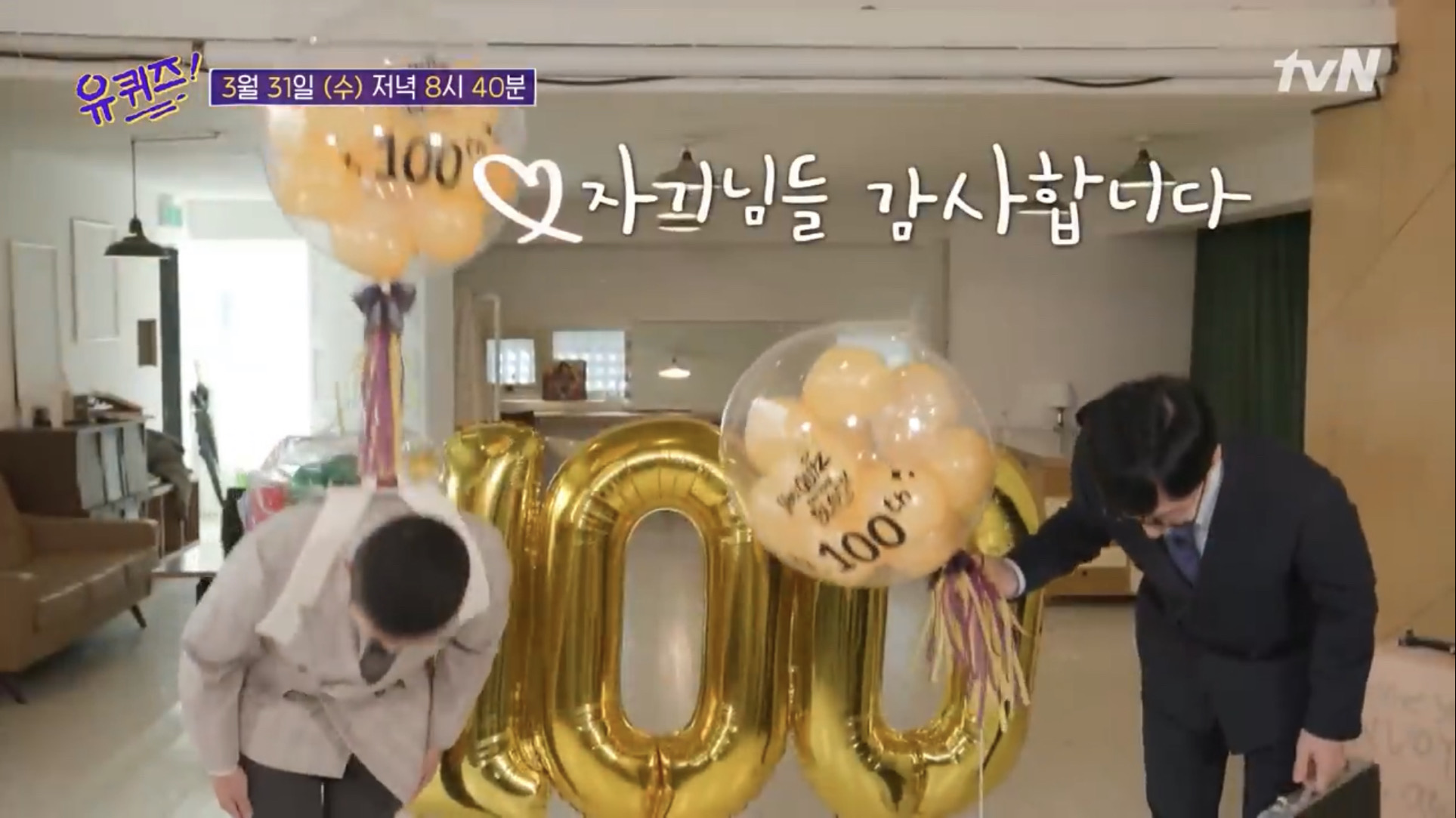 아기자기 조세호 역시 100회는 정말 경이로운 숫자다라고 놀라워하는가 하면, 광화문에서 진행됐던 첫날 녹화가 생각이 난다라며 유 퀴즈 추억 여행에 빠졌다는 후문 입니다.