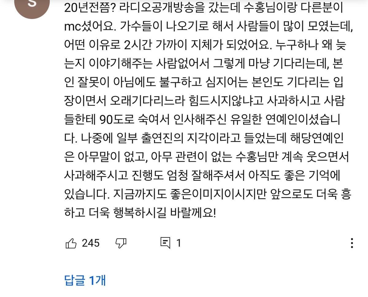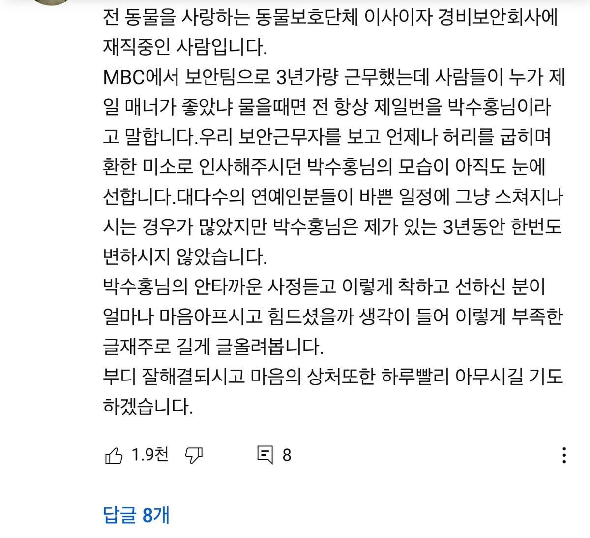 박수홍 유튜브에는 박수홍 과 관련한 미담이 수 없이 쏟아져 나오는 등 응원글이 올라오며 화제가 되고 있습니다.