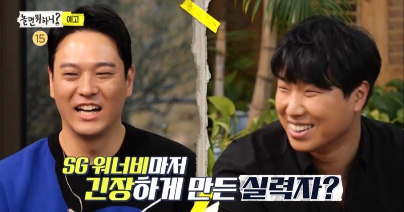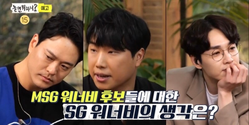 놀면 뭐하니? MSG워너비 오디션편에 유야호가 블라인드 오디션에서 메인 보컬 후보자들의 노래를 SG워너비에게 들려준 모습이 공개되었습니다. 제작자 유야호와 찐SG워너비(김용준, 김진호, 이석훈)가 MSG워너비 블라인드 오디션 지원자들의 노래에 푹 빠진 모습과 유야호가 합격의 유야호를 준 MSG워너비 메인 보컬 후보들에 대한 의견을 나눈것으로 보입니다.