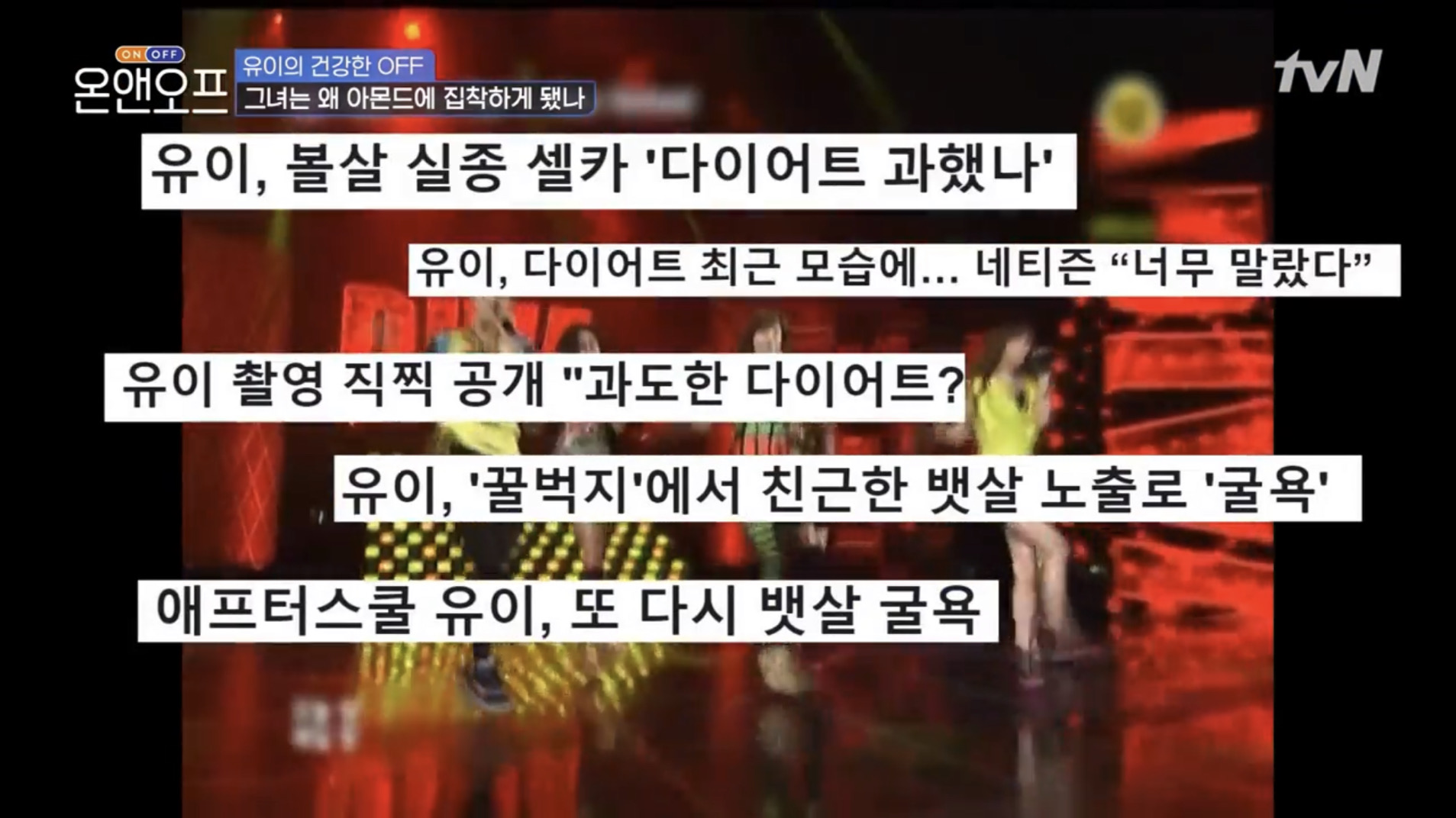 tvN 예능 온앤오프 41회 에서는 애프터스쿨 출신 배우 유이가 바디프로필에 도전한 이유와 함께 독립 8년 만에 본가에 돌아간 유이의 일상이 공개 되었습니다.