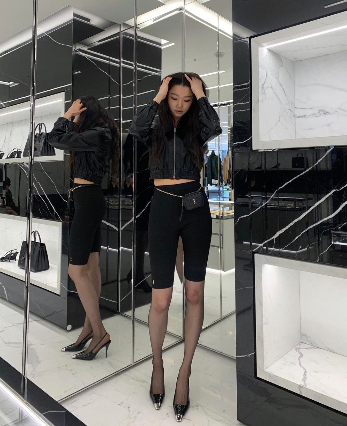 종족이 다른 수준이네요. 길쭉한 다리와 잘록한 허리 미쳐버린 몸매 맞습니다.