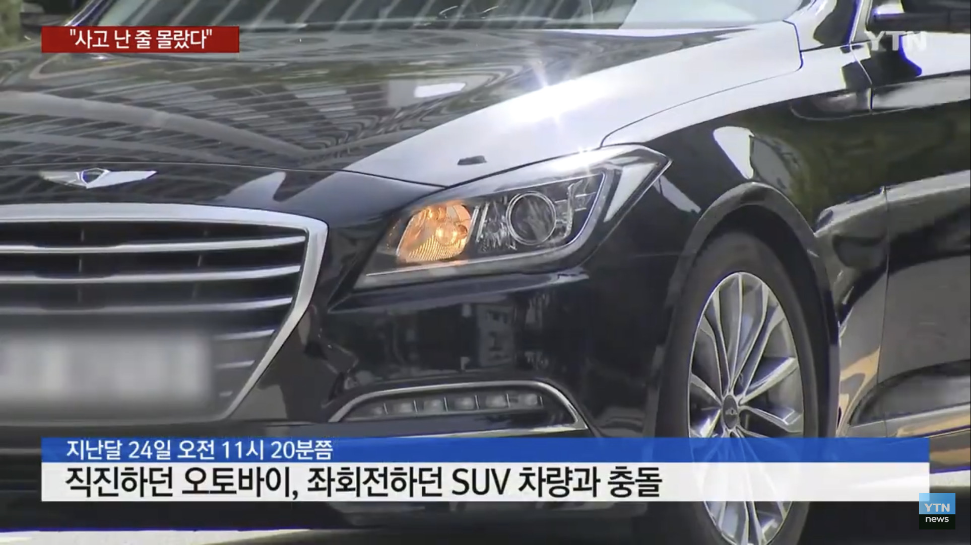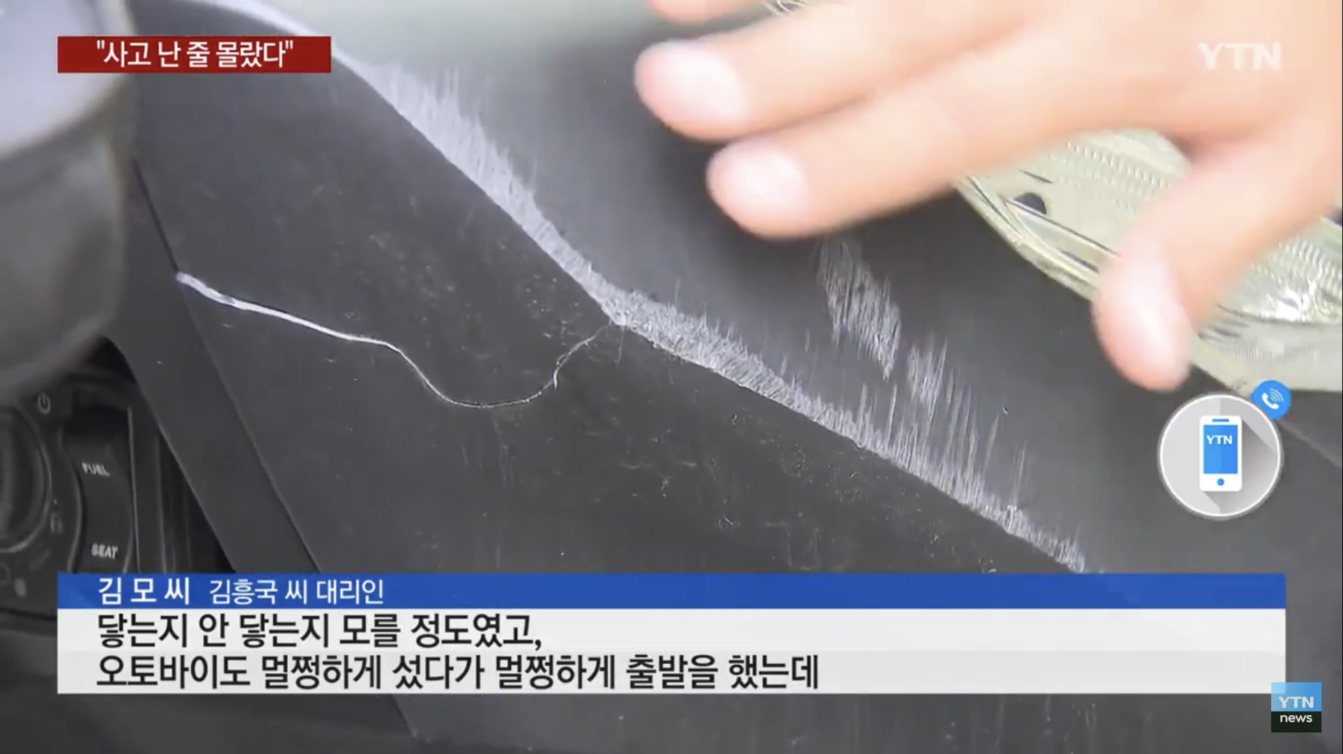 영상으로 보면 확실히 김흥국씨는 정차했고 오토바이가 스쳐 지나가네요. 김흥국씨 증언대로 오토바이가 번호판을 친 뒤 스쳐지나갔고 현장을 떠났다면 별 도리가 없었을 상황이긴 합니다.