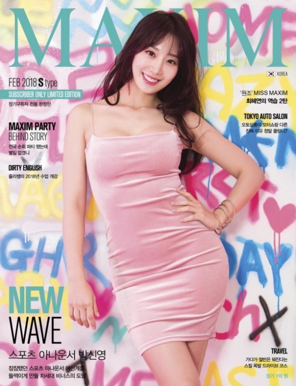 남성잡지 맥심의 2018년 2월호 표지 모델이었는데요. 커버 스토리 엠스플 퇴사 후 첫 스케줄로, 촬영을 위해 5일 전부터 혹독하게 체중 감량을 했지만 막상 화보엔 허벅지만 강조해서 충격을 받았다고 합니다. 하지만 정말 매력적인 허벅지 입니다!