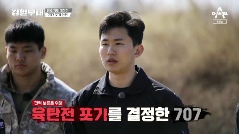 제2경기에서는 치열한 신경전을 이어온 707과 UDT가 접전을 벌였지만 707대장 이진봉은 전력 보존과 부상 방지를 위해 기권을 선언하는 전략을 펼쳐 UDT가 곧바로 부전승에 올랐습니다.