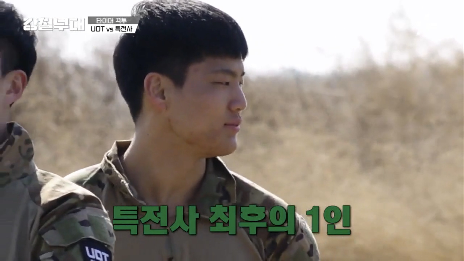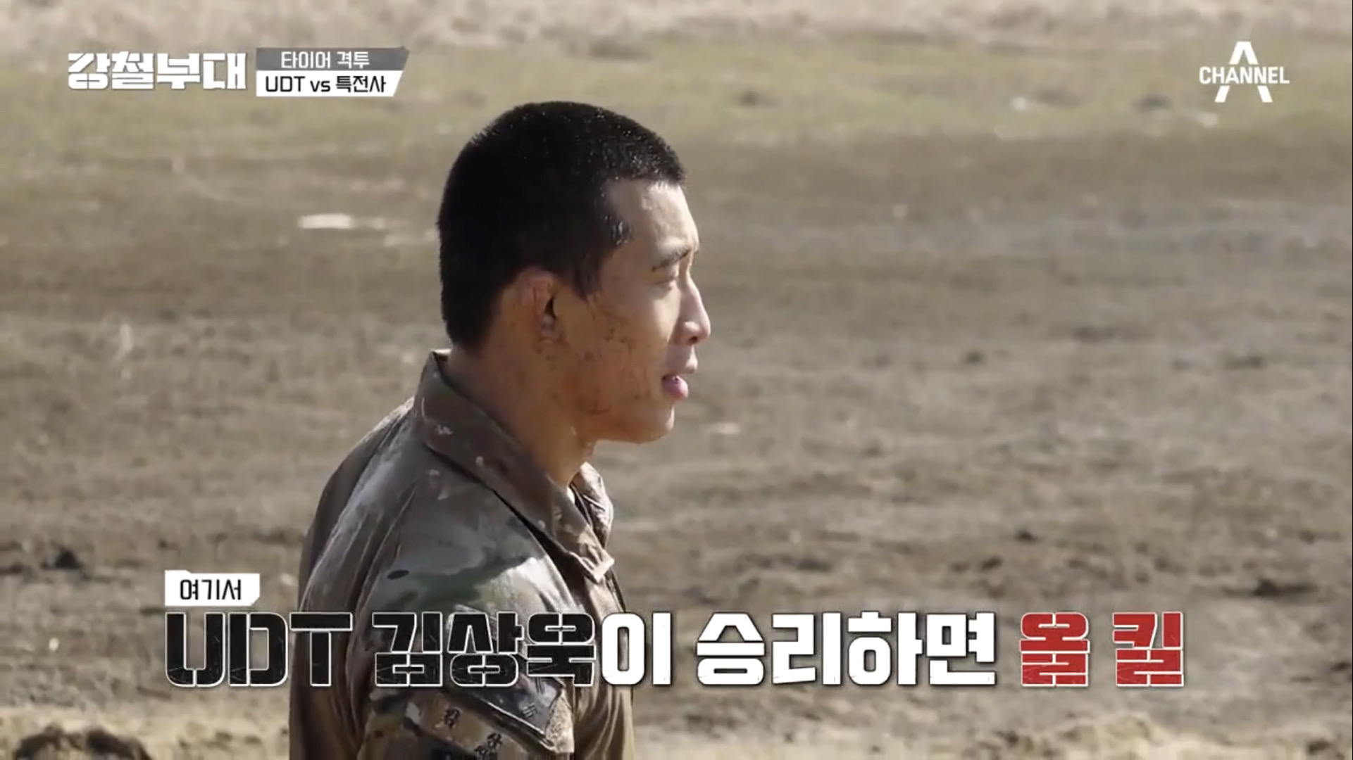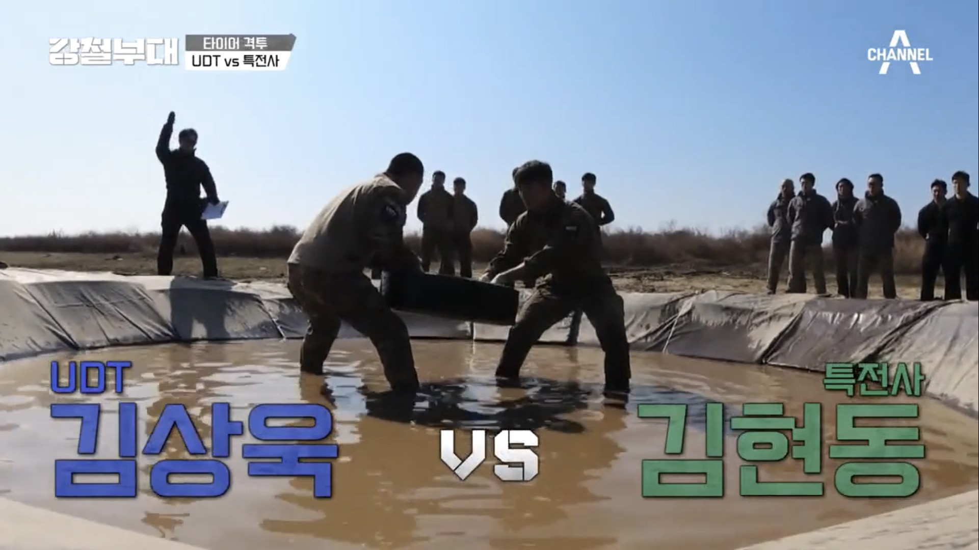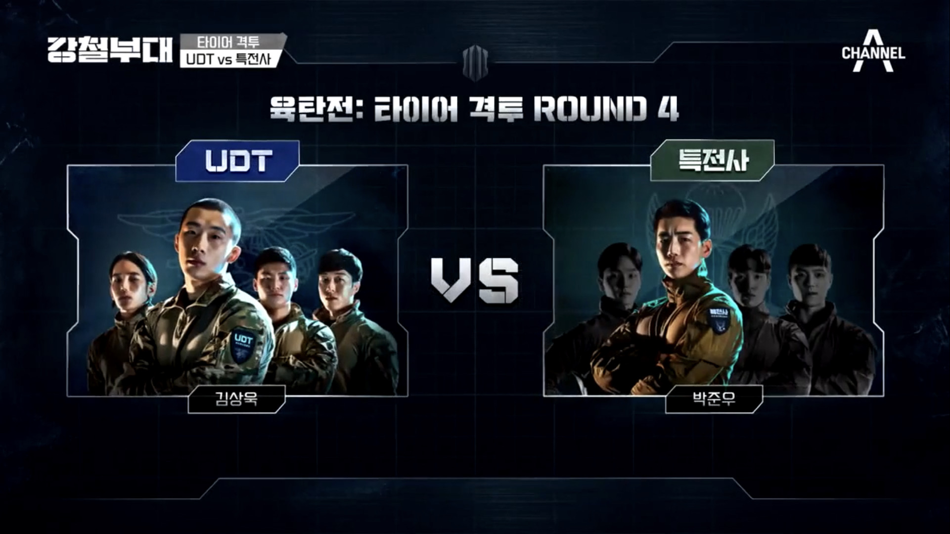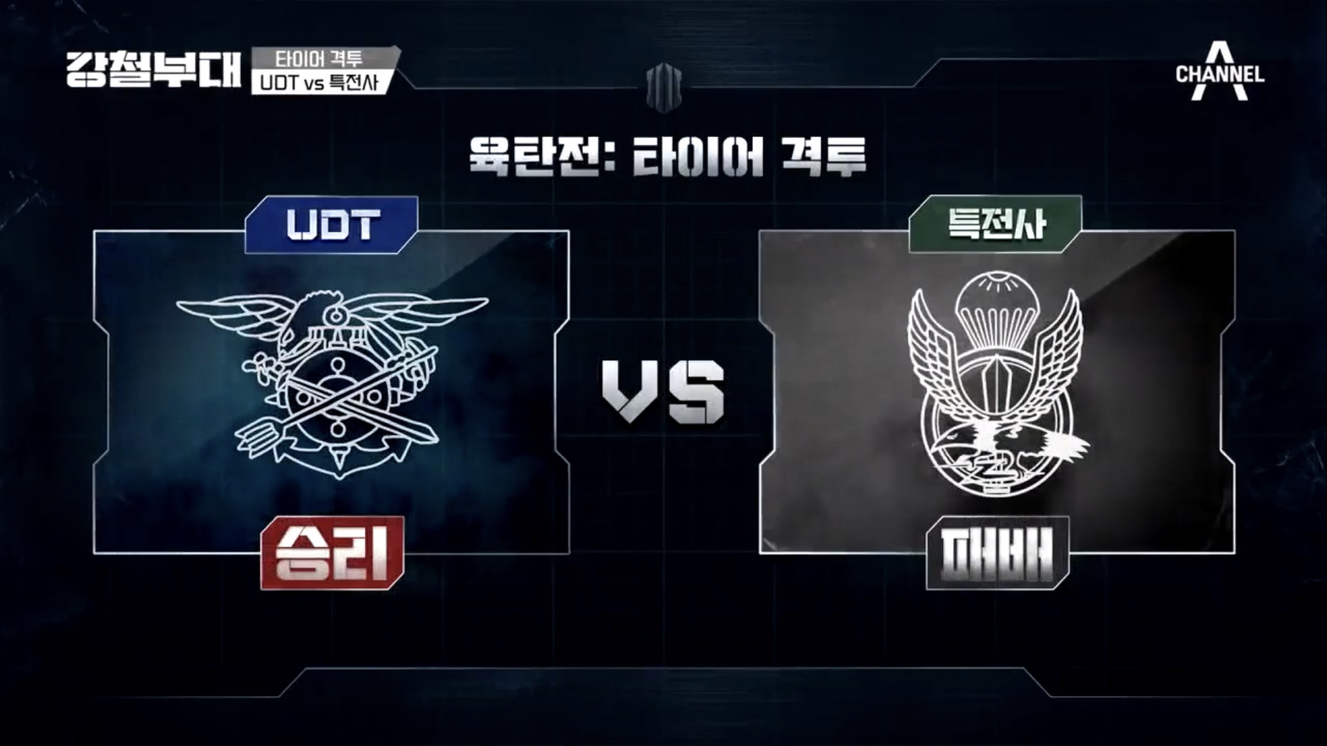 팀원 간 1대 1로 진행되는 육탄전 최종라운드 종목인 타이어 격투 에서는 격투기 선수인 UDT 김상욱이 4연승의 올킬 쾌거를 이뤄 명장면을 보여주었는데요. 특전사 김현동이 선봉으로 출전해 그의 힘을 빼놓기 위해 사력을 다했으나 역부족이었고 UDT 김상욱은 단 3초 만에 특전사 정태균을 제압했으며 박도현의 악바리 정신력도 뛰어 넘으며 깃발을 선점하며 괴물 같은 저력을 입증했습니다.