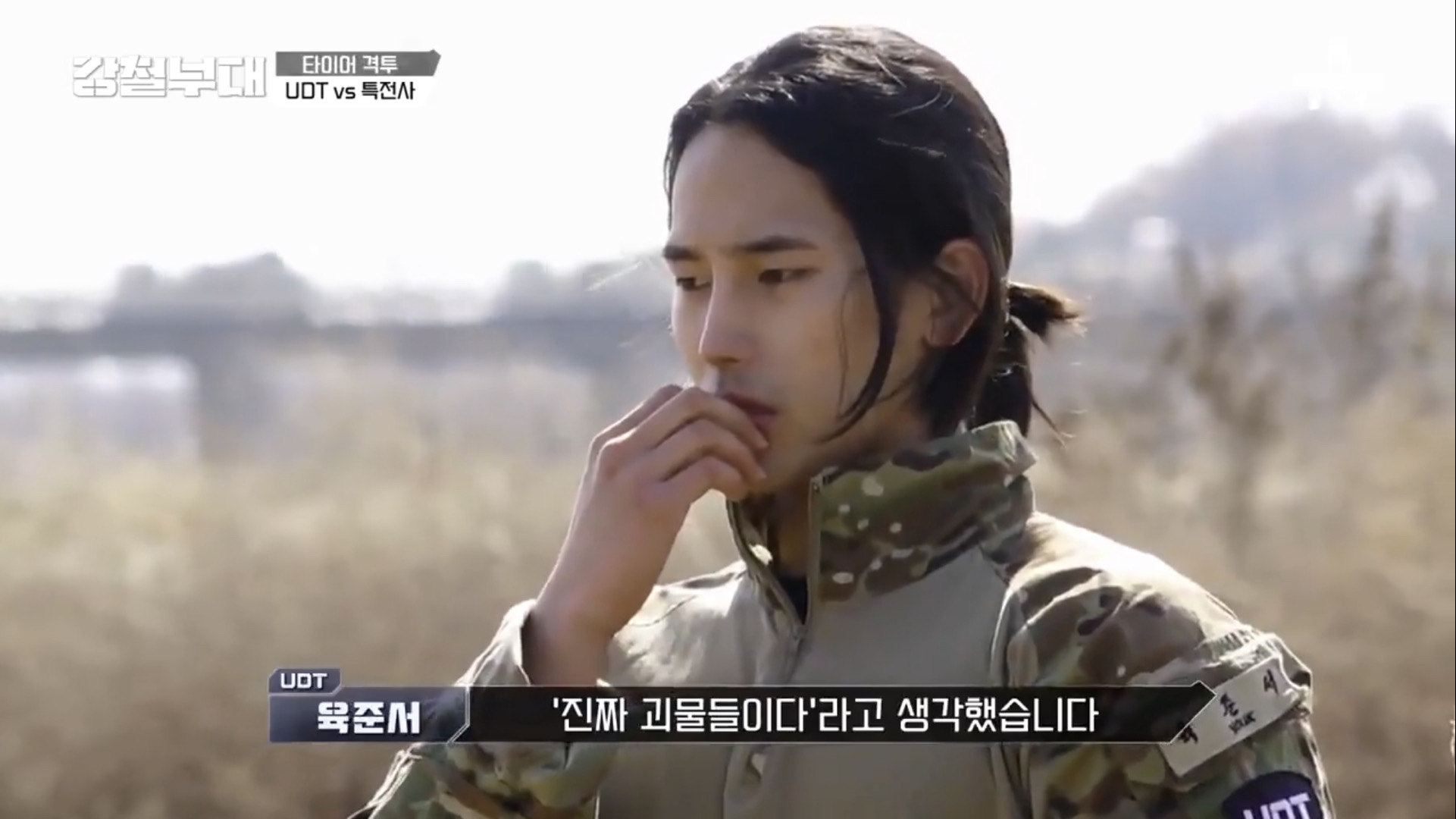마지막으로 출전한 특전사 대장 박준우는 타이어의 반동을 활용 하며 UDT 김상욱에게 위협을 가하는 심리전을 썼는데요. 확연한 체격 차이에도 자신만의 전략으로 정면승부에 나서 믿고 보는 지략가로서의 면모를 보여주며 감탄을 불러일으키기도 했습니다.
