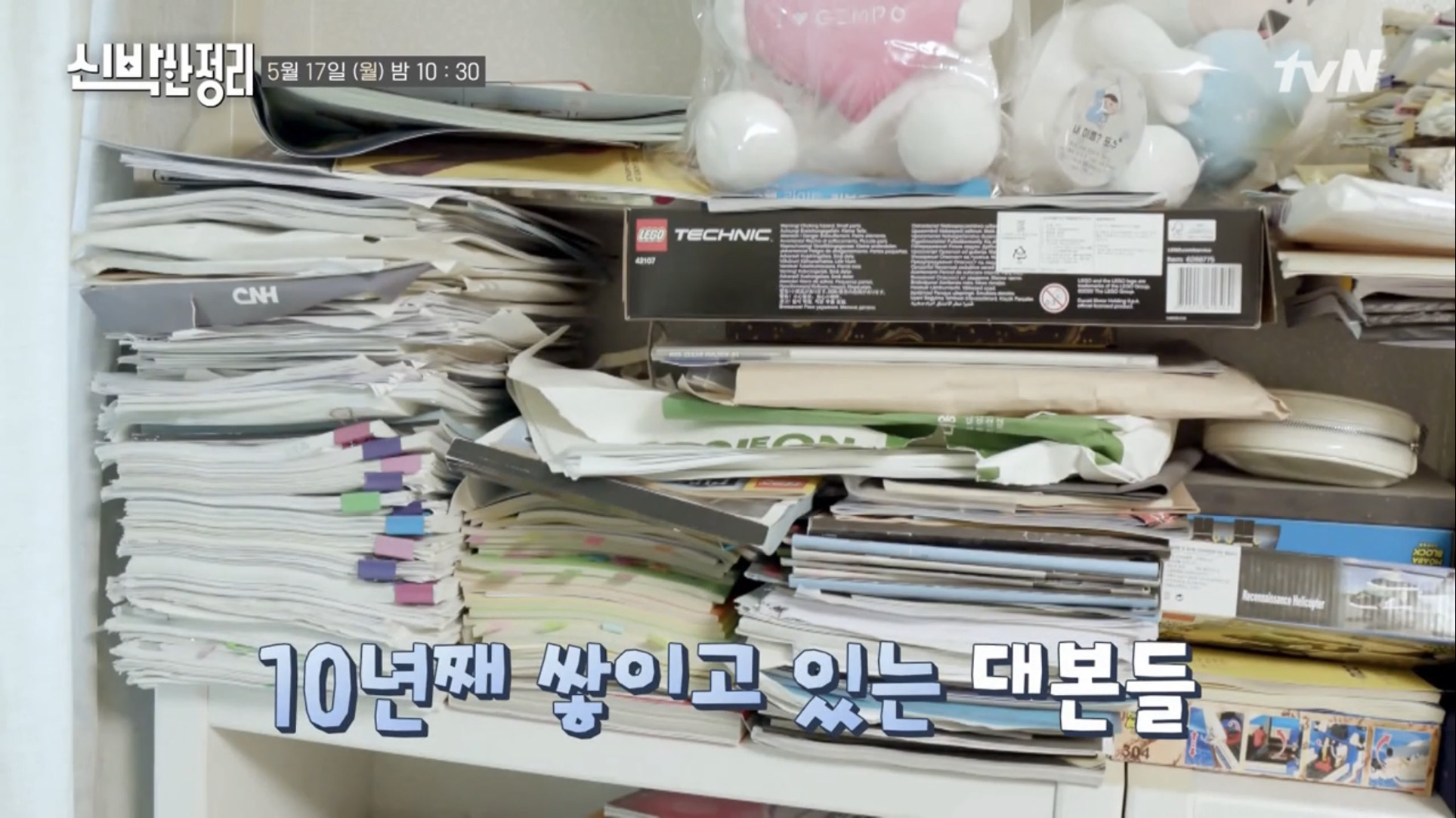 그뿐만 아니라 10년간 모은 대본, 팬이 휴지에 쓴 편지와 먹다 남은 종이컵까지 추억이 담긴 물건을 비우지 못해서 쌓여만 가는 모습에 신박한정리단의 안타까움을 자아냅니다.