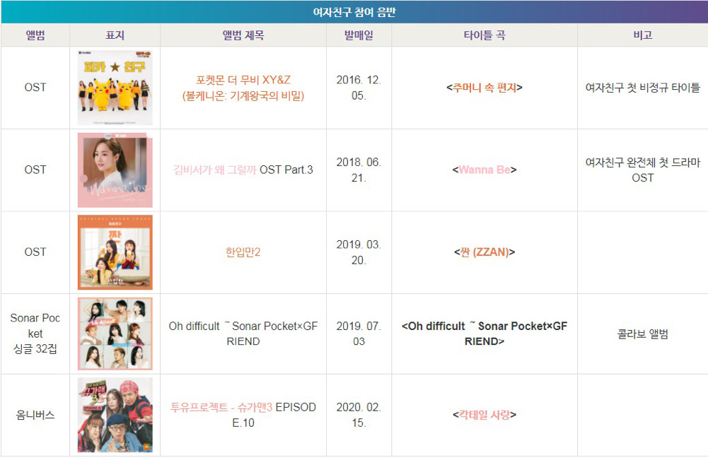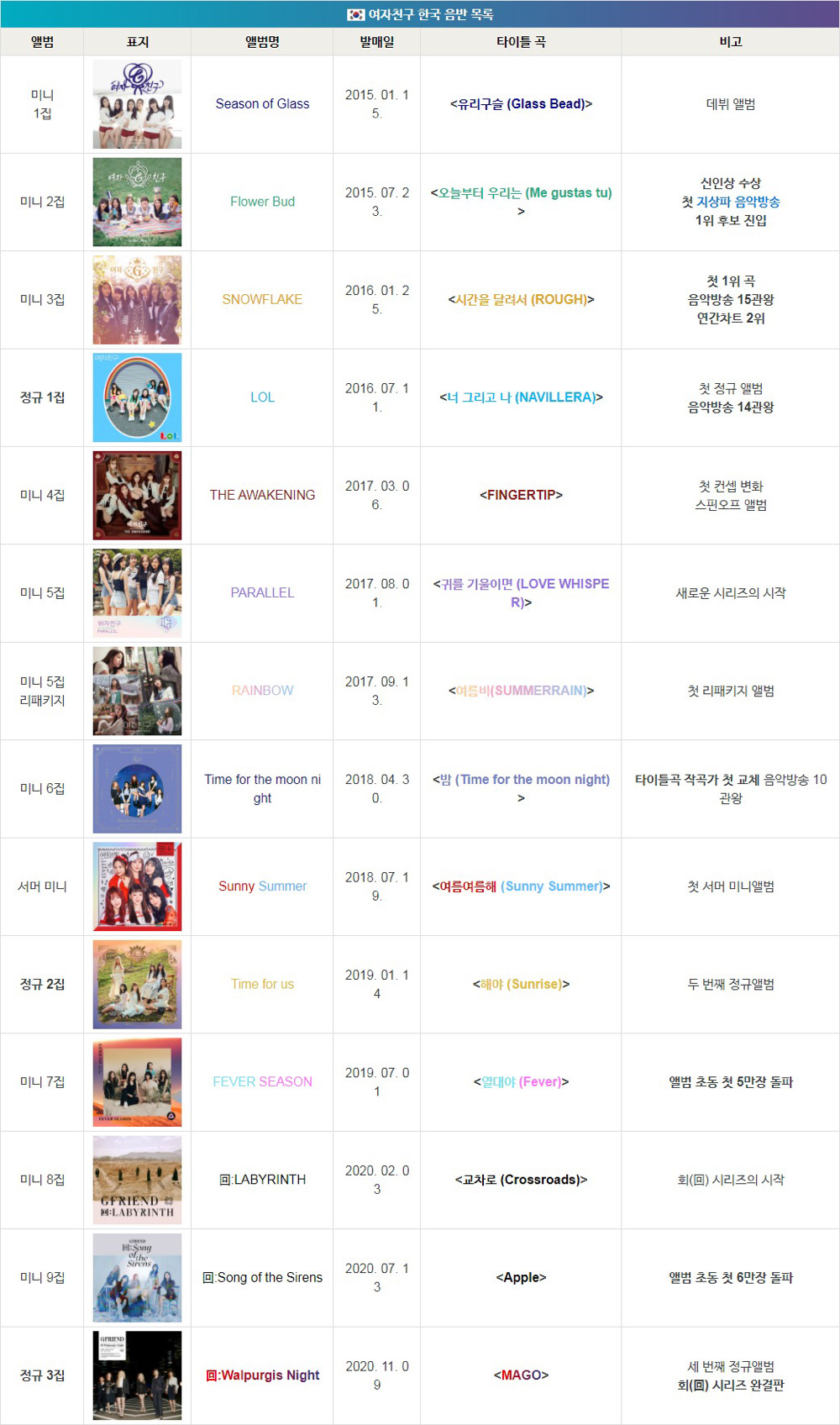 여자친구 발매 앨범 모음