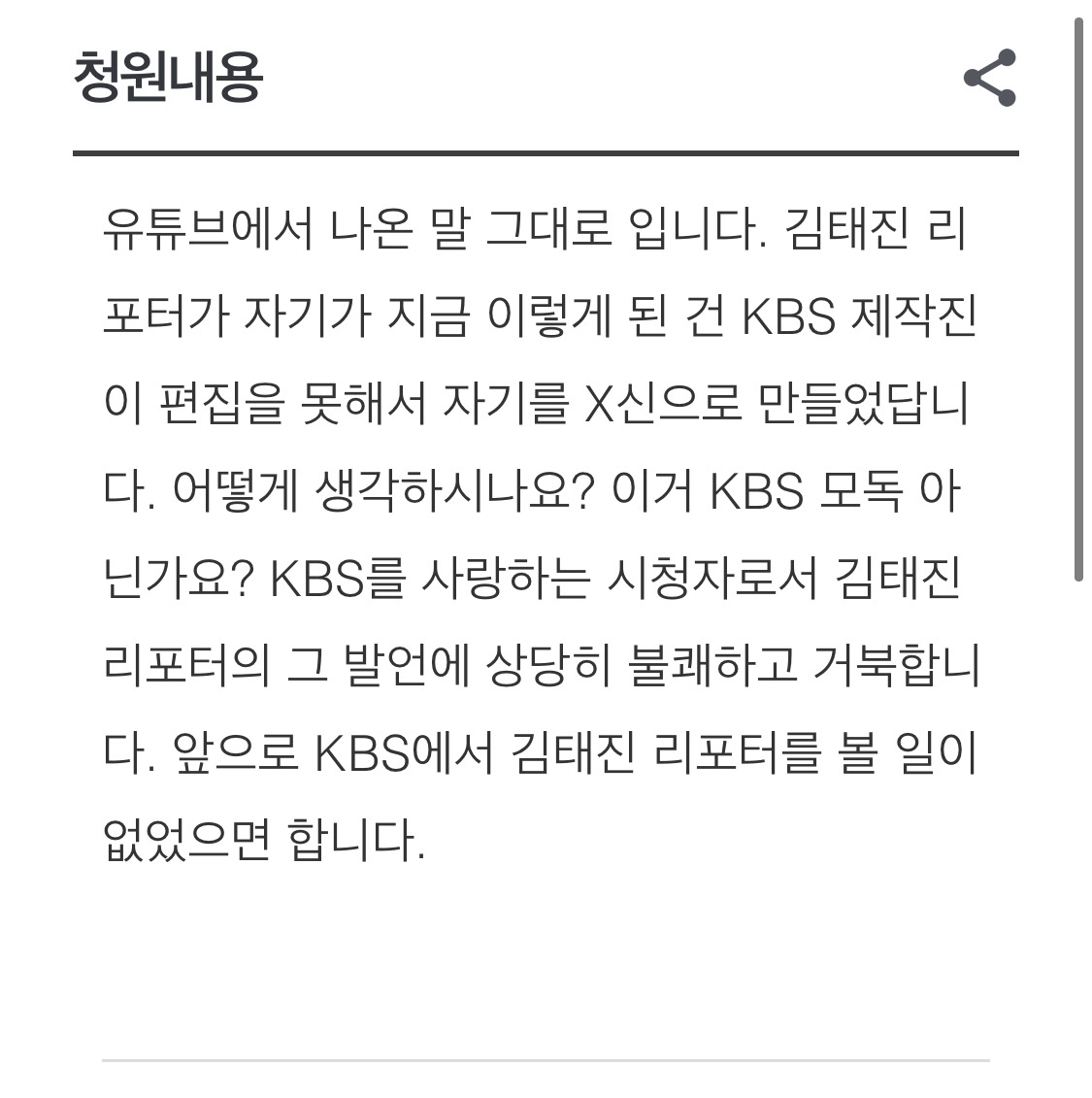 김태진 리포터 KBS 시청자 청원