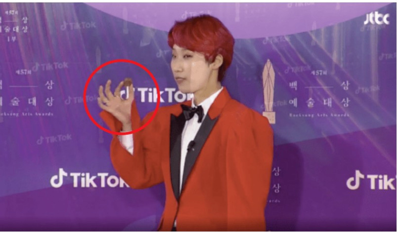포토월에서 갑자기 초콜릿을 들고 이렇게 손가락 모양을 하면서 초콜릿을 먹더라. 근데 요즘 이 손가락이 지금 문제의 손가락이지 않나. 그래서 난리가 났다고 설명했습니다.