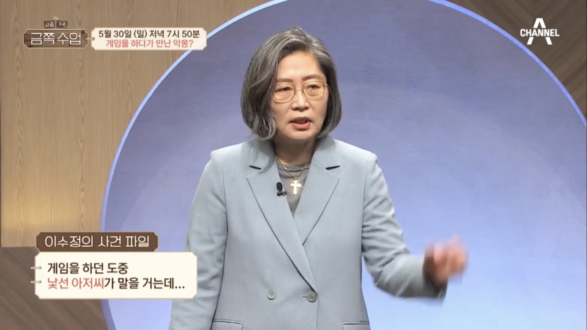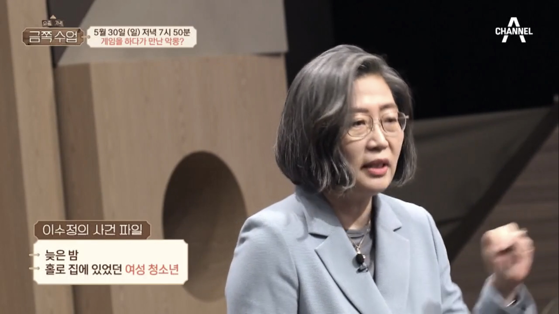요즘 가족 금쪽 수업에서는 우리나라 최초 범죄심리학자 이수정 교수가 부모가 해주어야 하는갓, 우리아이 사이코패스로 키우지 않는법에 대해 강연 합니다. 이수장 교수는 스마트폰 채팅을 통해서 낯선 남자에게 메시지를 받은 한 여학생이 우리 집에 피자 먹으러 올래? 라는 꼬임에 넘어가 끔찍한 성범죄의 피해자가 된 충격적인 실제 사건을 언급하면서 평범한 한 소녀의 인생이 어떻게 끔찍한 악몽으로 변하게 되었는지를 설명합니다.