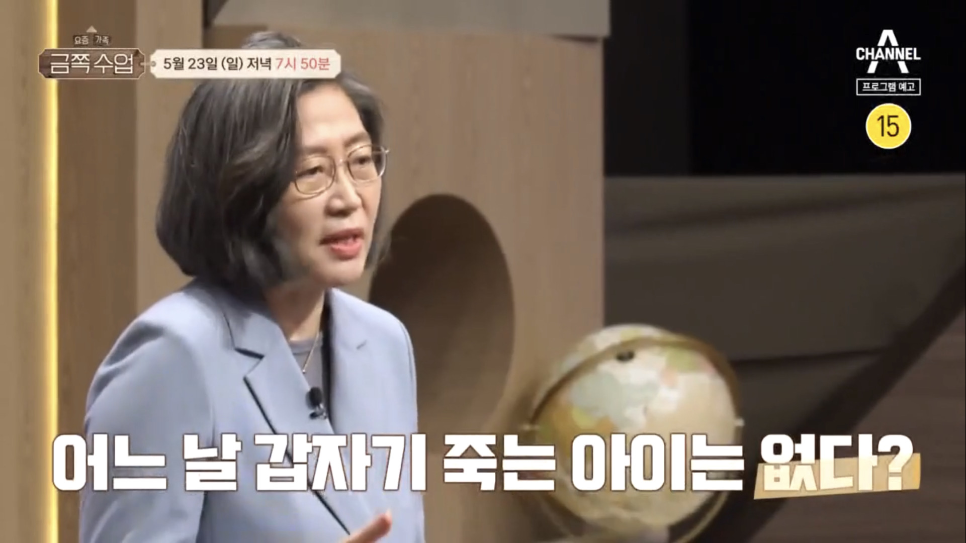 금쪽 수업 이수정 교수는 20년 넘게 범죄심리학자로 지켜보면서 가장 끔찍한 사건은 아동학대 치사 사건이라며 어느 날 갑자기 죽는 아이는 없다는 주제로 아동학대의 원인과 가해자들의 특징 이나 이를 막기 위한 방법 등에 대해 강연합니다.