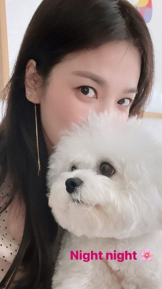 배우 송혜교가 반려견과 행복한 일상을 공개했습니다. 송혜교 인스타그램에는 Night Night 라고 적고 송혜교가 반려견을 안고 뒤에서 개구지게 올려보는 얼굴이 담긴 사진이 올라왔는데요. 투명한 피부로 보나 여전한 동안미모로 보나 41세로는 보이지 않는 비주얼을 선보이고 있네요.