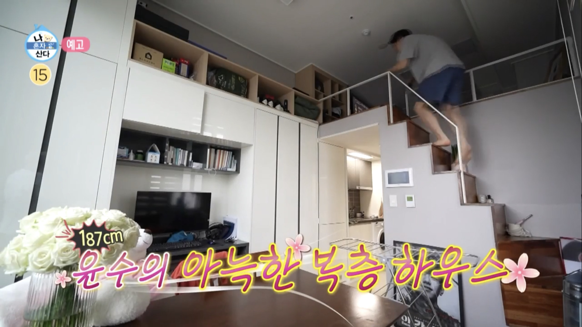 남윤수는 키 187cm의 큰 키에도 불구하고 복층 원룸에 완벽 적응한 모습을 보여주며 놀라움을 자아내는데요.
