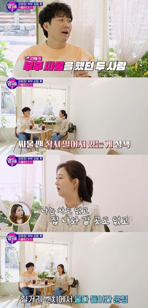 도경완이 일방적으로 내가 혼난 것 이라고 부인하자 장윤정은 거짓말하지 마라. 내가 울고 집을 나갔는데 라고 부인했고 장윤정은 자기는 화나면 차 타고 나가는데 나는 막상 갈 데가 없지 않나. 그래서 길거리 벤치에서 울다가 들어갔다고 털어 놓았습니다.