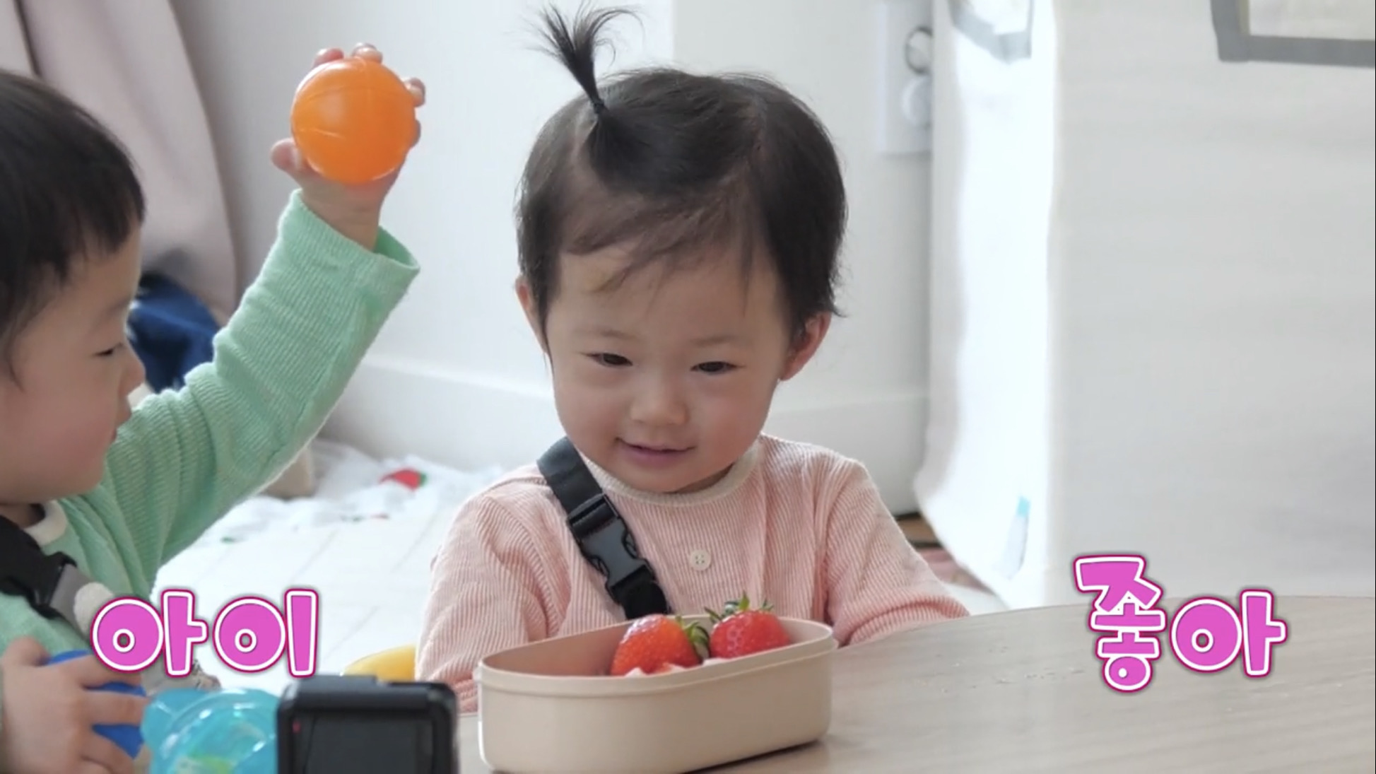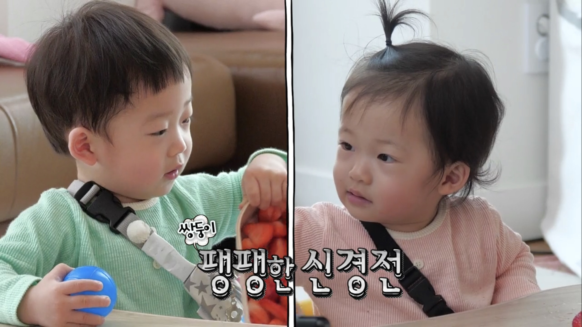 지난번 만남때 보다 더욱 힘이 넘치고 활발해진 아이들의 움직임이 이천수네 거실을 웃음 가득하게 바꾸었다고 하는데요. 꼬물이 같던 쌍둥이들은 폭풍 성장해 식탁에 앉아 딸기와 요구르트 먹방을 즐기는 쌍둥이의 사랑스러운 모습은 심쿵을 유발합니다.