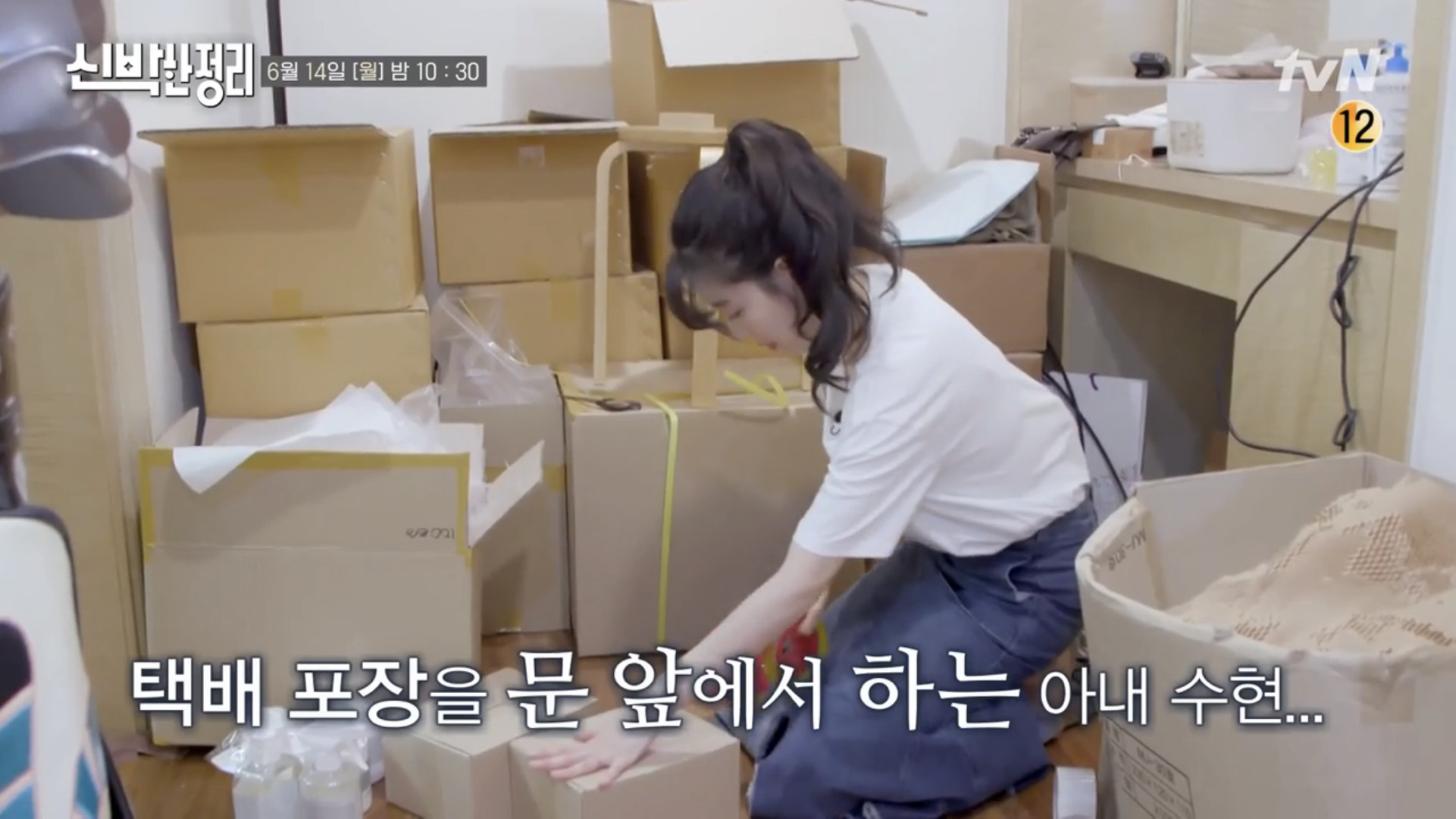 최악의 동선 때문에 부부가 서로의 단잠을 방해하는 건 기본이고 전에 살던 집보다 공간이 줄어든 탓에 갈 곳은 잃은 묵은 짐들로 인해 멀쩡한 방까지 창고로 전락해버렸습니다. 윤석민의 은퇴 이후 사업까지 시작한 와이프 김수현의 집 안에는 제대로 된 공간도 없이 문 앞에서 택배 포장 작업을 하고 있어 모두를 놀라게 만들기도 했습니다.