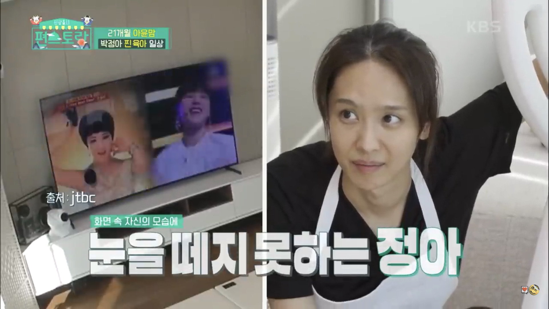아윤이의 모습을 본 편스토랑 식구들은 모두 칭찬을 쏟아냈는데요. 하지만 막상 가장 감동받은 사람은 엄마 박정아였습니다. 처음으로 본 아윤이의 모습에 박정아는 친구들과 있을 때의 아윤이 성향에 대해 잘 몰랐는데 이렇게 보니 괜히 감동이다 라고 전했습니다. 이때 예능 대부 이경규는 아윤이에 대해 대견하기도 하고, 방송을 잘 아는 아이다 라고 이경규다운 칭찬을 해 스튜디오에 큰 웃음을 주었습니다.