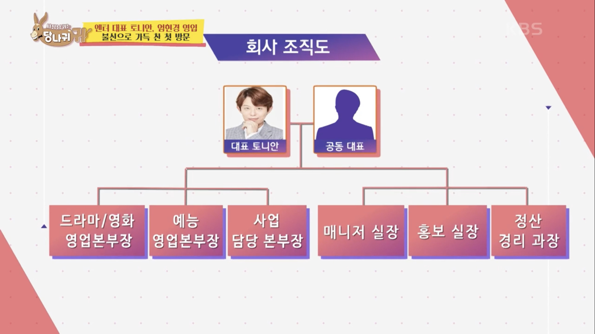 6월 20일 방송되는 KBS2 예능 사장님 귀는 당나귀 귀(당나귀 귀)에 토니안의 25년 차 찐팬인 배우 신소율이 스페셜 MC로 출연 합니다.