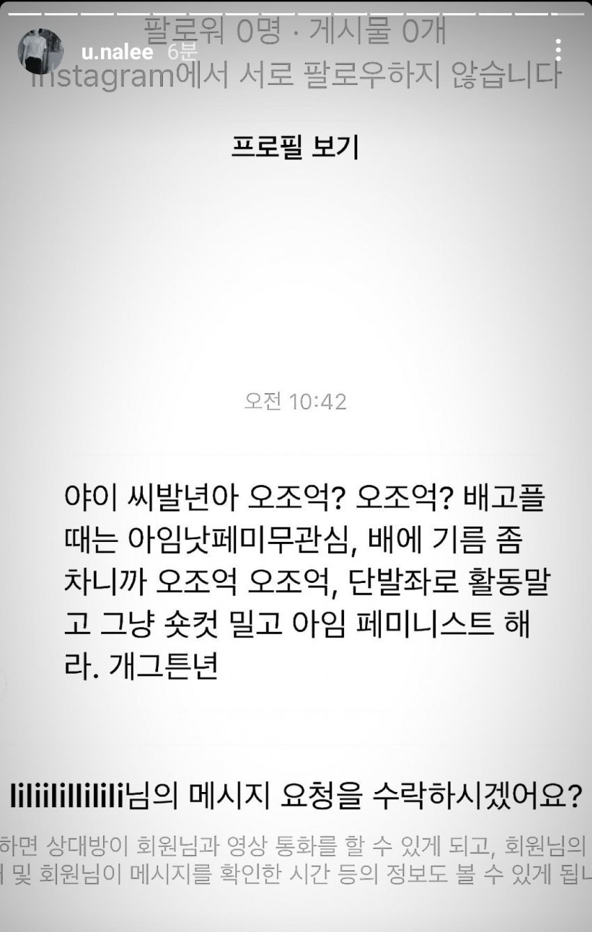 해당 글에는 야이 씨XX아, 오조억? 오조억? 배고플 때는 XXXXX 배에 기름 좀 차니까 오조억 오조억, 단발좌로 활동 말고 그냥 숏컷 밀고 XXXX해라. 개가튼X 이라고 적혀 있었습니다.