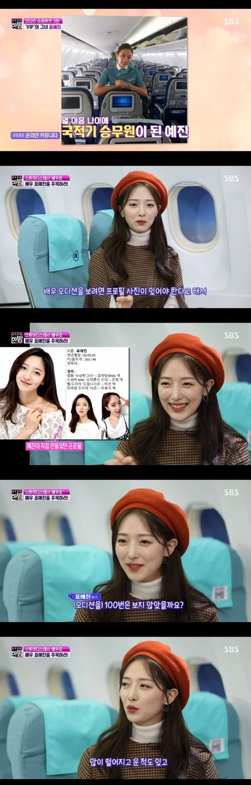 스튜어디스에서 배우로 전향한 표예진은 친구와 승무원 시절을 돌아보며 친구는 네가 그만 둔다고 했을 때 배우를 한다고 말했다고 전했는데요. 표예진은 언니들과 여행하고 놀았던 추억은 지금도 좋다면서도 이 승무원 생활을 10년 한다고 생각했을 때 너무 숨이 막히더라 라며 이건 내가 원하는 미래가 아니라는 생각이 들었다고 2년만에 그만 둔 이야기를 전하기도 했습니다.