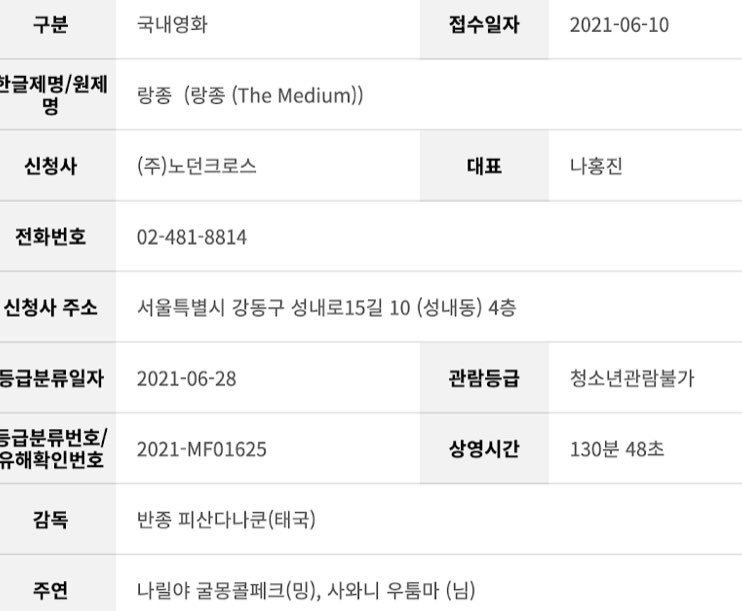 한글제명/원제명 : 랑종 (랑종 (The Medium))