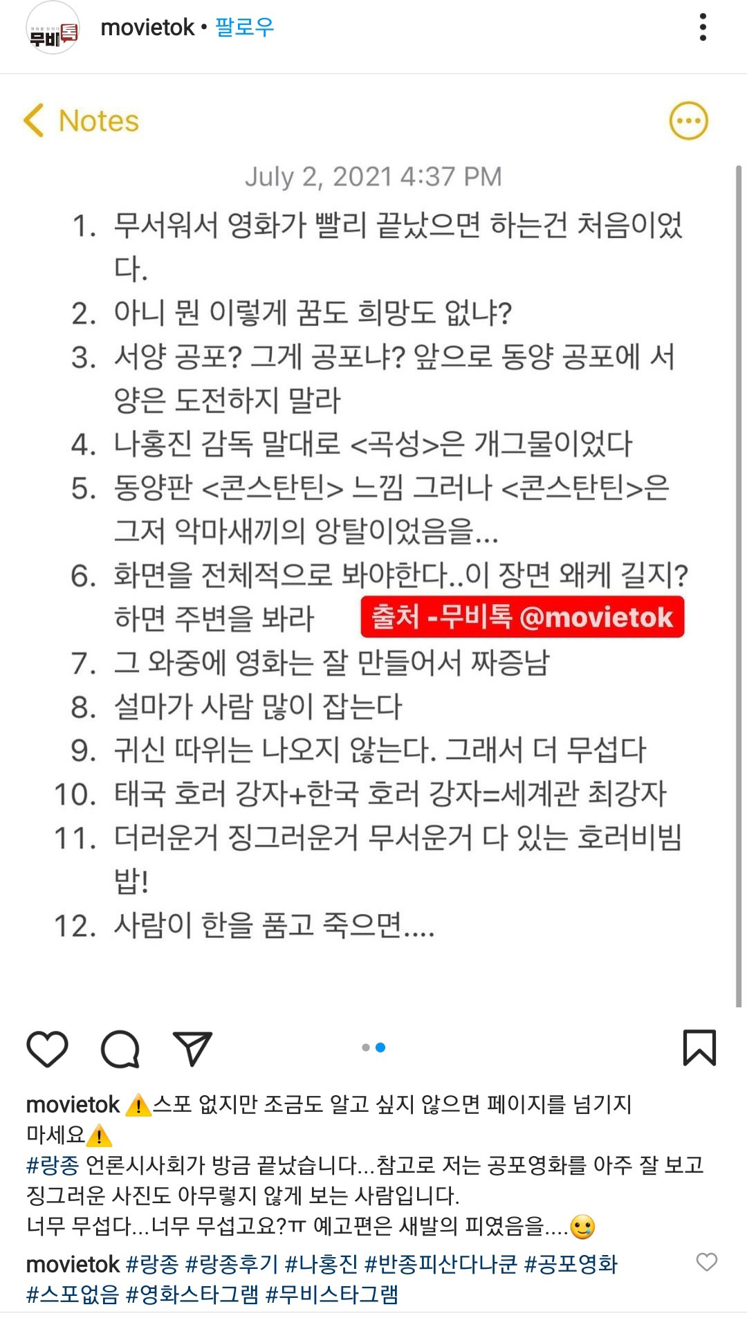 랑종 나홍진 감독 충격적 수위