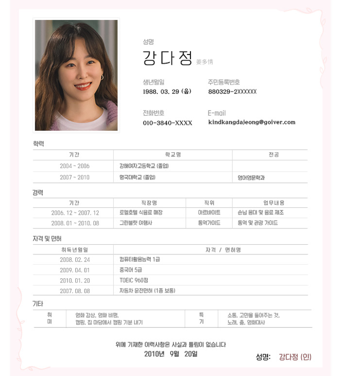 미국 교포 출신이며 과도하게 명랑하다. 아직 한국어가 서툴러 자주 입으로 오타를 내지만 크게 개의치 않고 하고 싶은 말은 다 하고 산다.