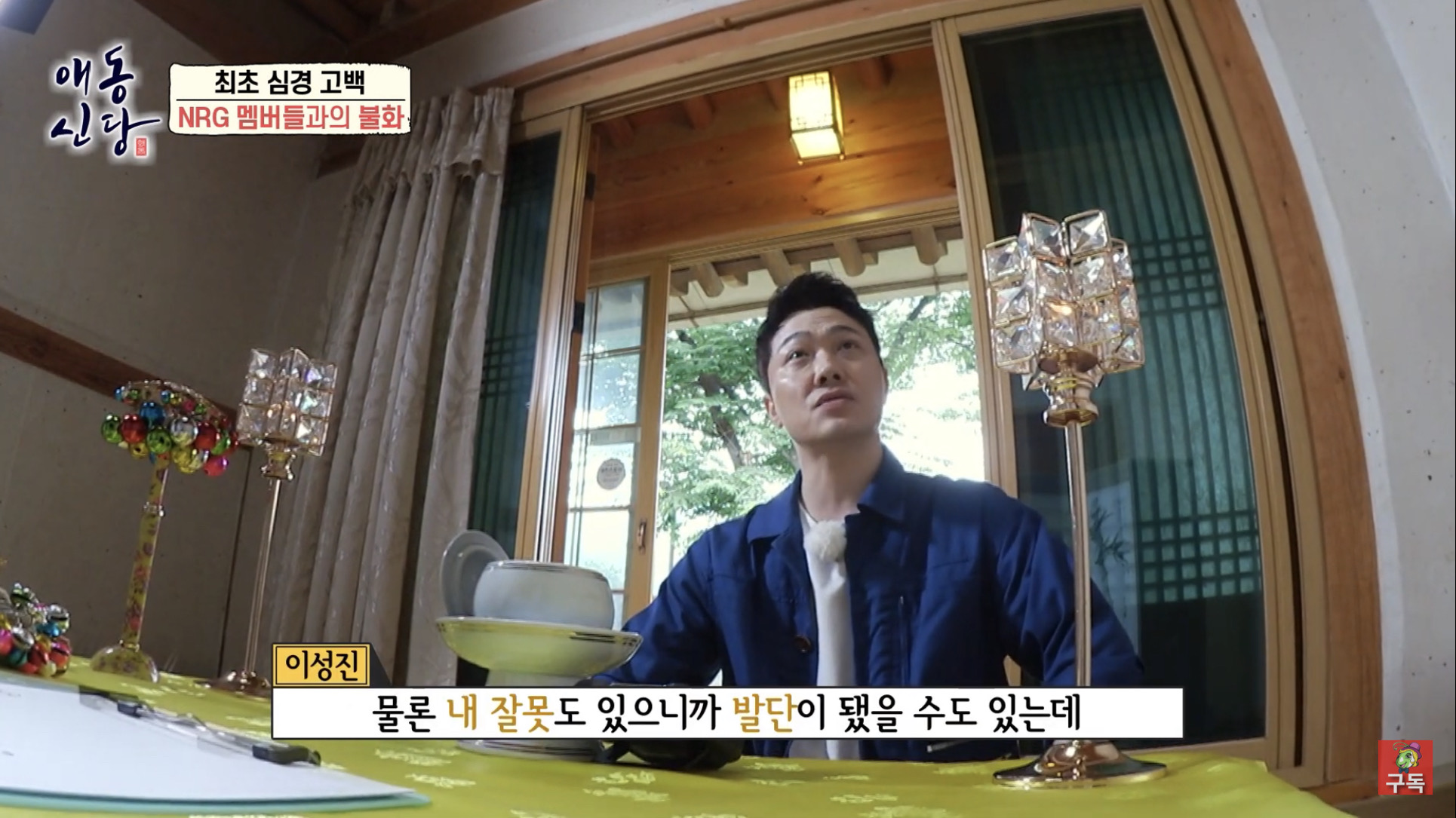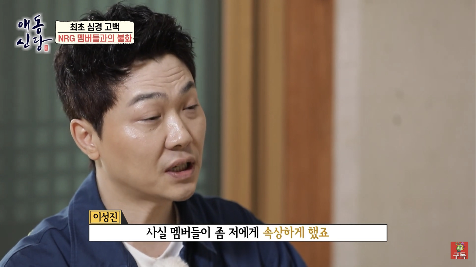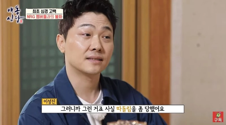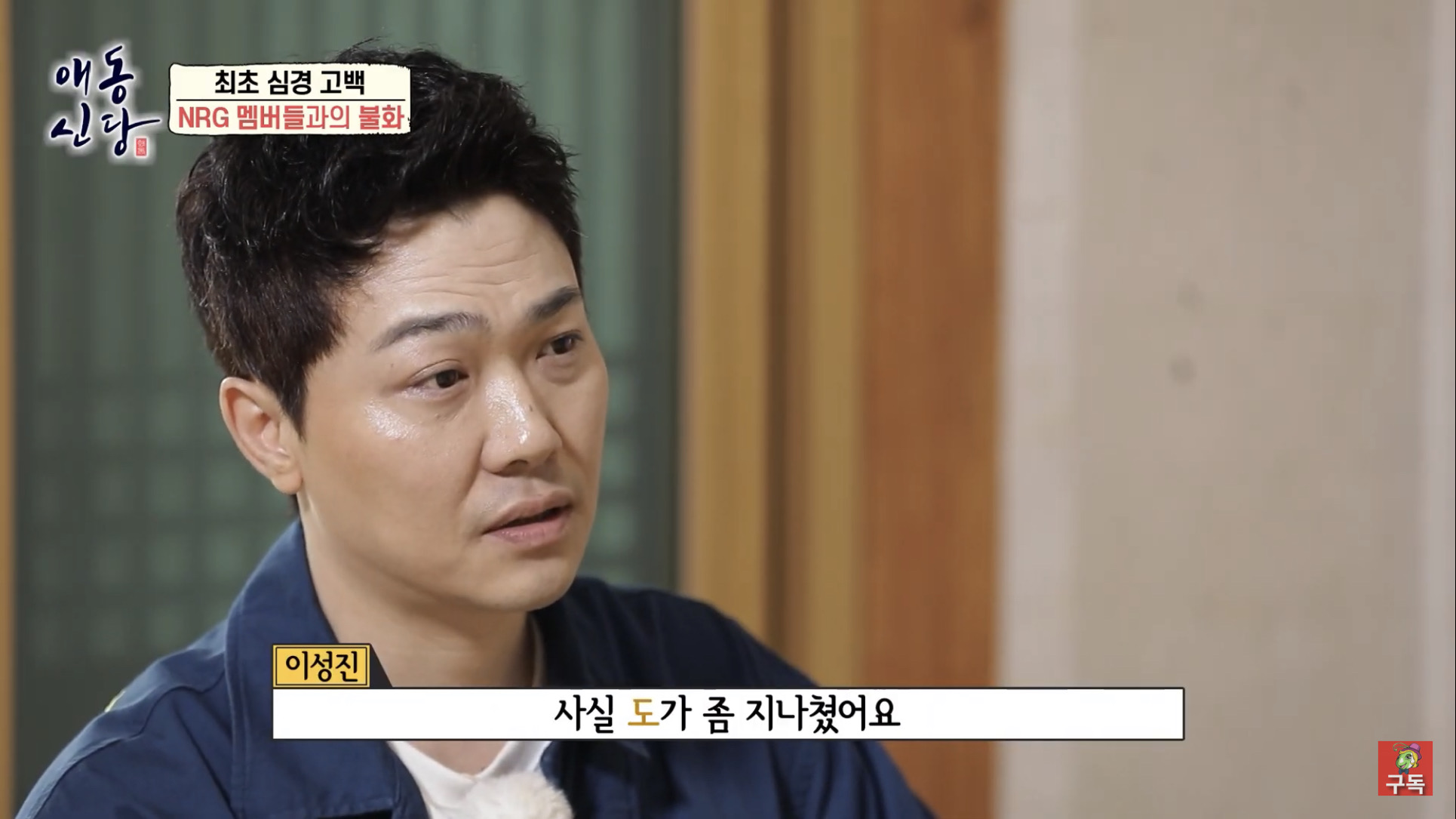 이성진은 7월 7일 유튜브 채널 애동신당을 통해 게스트로 출연 하여 과거 힘들었던 시절을 털어놓으며 NRG 팀원들과 불화설에 대해 좀 안 좋은 일을 나도 모르게 많이 겪게 됐고 멤버들로부터 따돌림을 당했다고 주장했는데요.