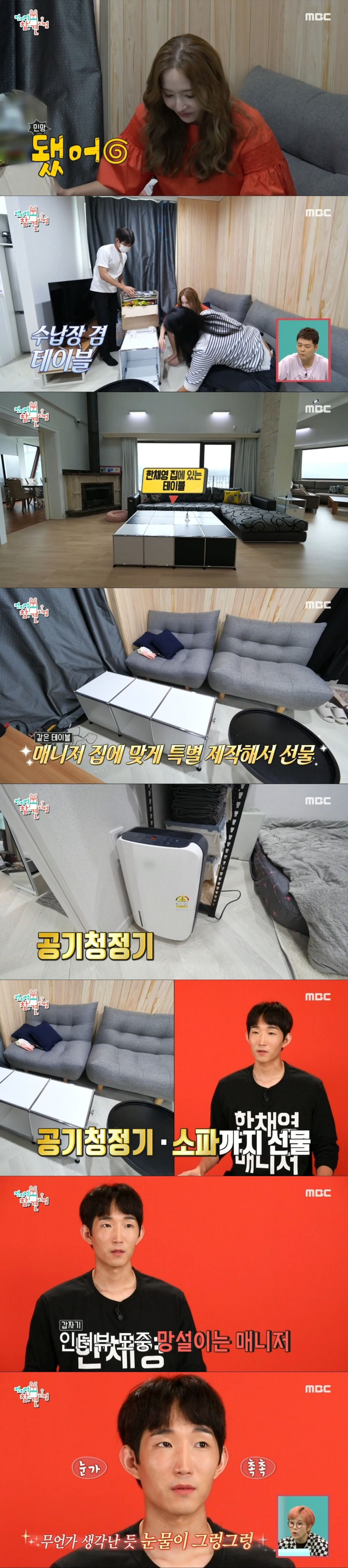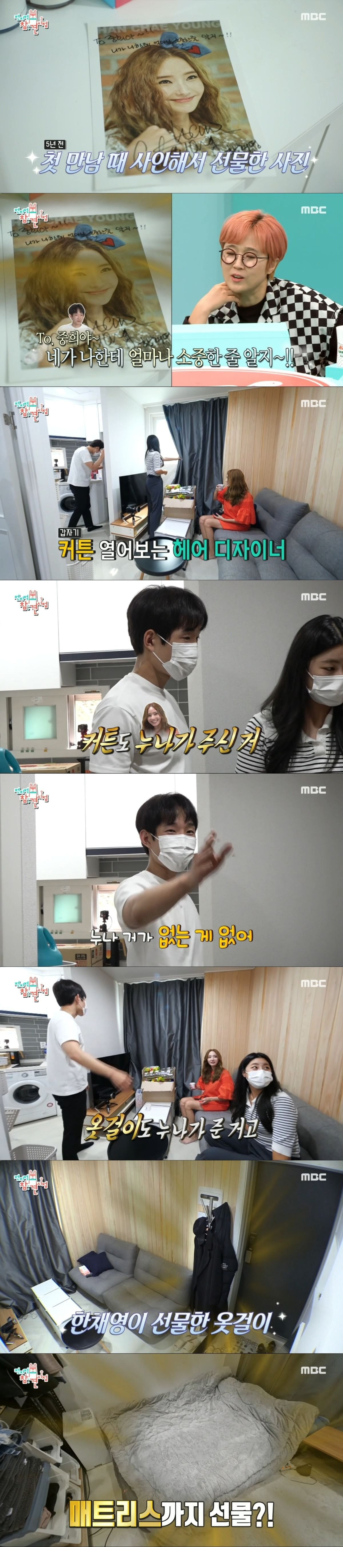 스케줄을 마친 두 사람은 저녁을 먹기 전 새로 이사한 매니저의 집에 들러 구경을 했는데요. 매니저의 집에는 5년전 한채영과 처음 만났을 때 받았던 사인이 그대로 있어 눈길을 사로잡았고 집에는 온통 한채영이 선물한 물건들로 가득했슴니다. 소파, 커튼, 매트리스, 공기 청정기를 비롯해 수납 테이블도 한채영이 사준 선물 이었습니다.