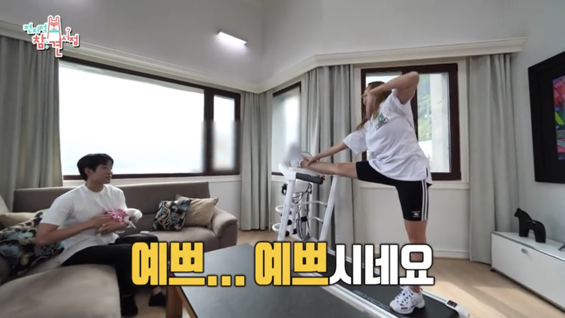 한채영을 본 매니저는 아침 운동을 시키면서 계속해서 예쁘다. 광고모델 같다 라고 칭찬을 남발 하며 남다른 방식으로 한채영을 조련해 웃음을 자아냈습니다.