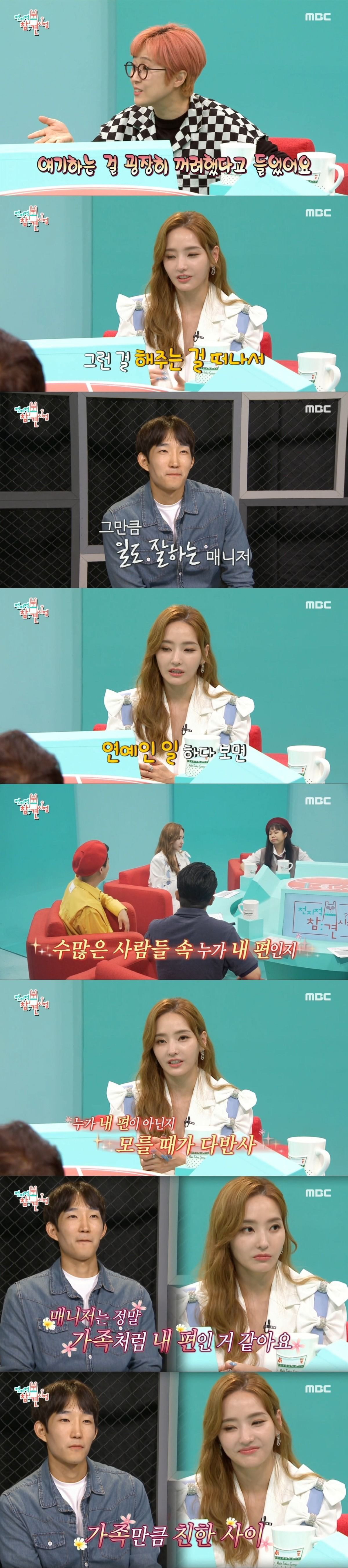 이어 이건 누나가 절대 비밀로 하라고 한 건데, 사실 이 집도 누나가 구해주신 거다. 말하지 말라고 했는데 라며 눈시울을 붉힌 매니저는 이어 제가 좀 많이 힘들어서 서울 생활을 접고 대구 집으로 내려가려고 했다. 그때 누나가 너는 잘될 수 있다. 너는 잘 할 수 있는 아이다. 넌 크게 될 아인데 왜 포기하려 하냐. 난 너 없으면 안 된다 라고 하셨고 다시 일하게끔 정말 도움을 많이 주셨다. 엄마 같은 누나다 라고 고마운 마음을 전했습니다.