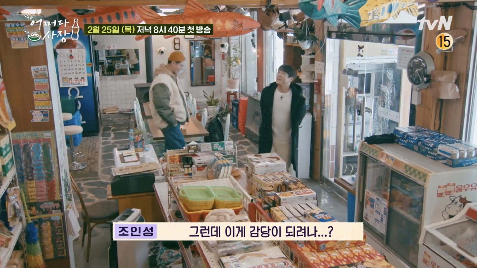 강원도 화천의 시골 가게에서 물건도 팔고 음식도 만들어 팔게 되는 차태현, 조인성