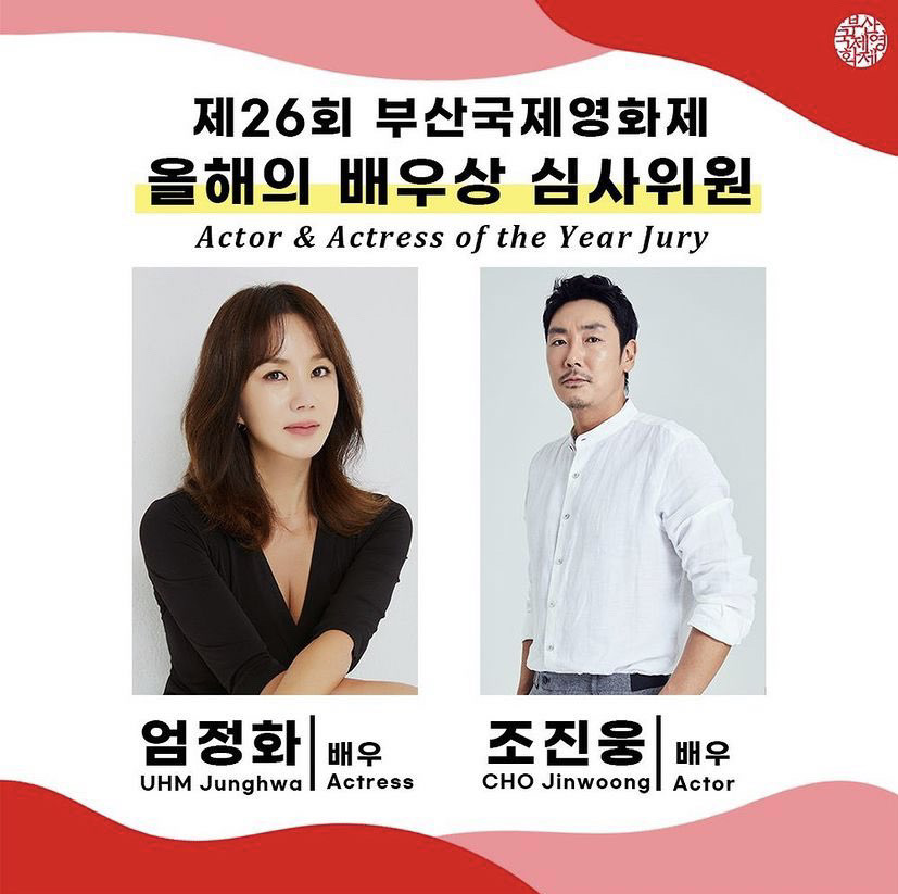 엄정화, 조진웅이 제26회 부산국제영화제가 올해의 배우상 심사위원으로 선정되었습니다. 오는 10월 6일부터 15일까지 열리는 제26회 부산국제영화제가 올해의 배우상 심사위원으로 엄정화와 조진웅을 위촉했는데요.