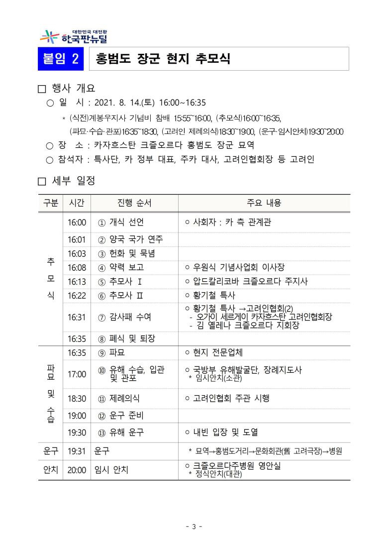 홍범도 장군 유해 봉송 대통령특사단파견 현지 일정
