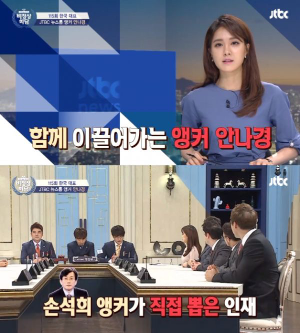 MC 유세윤이 안나경 아나운서는 2000대 1의 경쟁률을 뚫고 손석희 앵커가 직접 뽑은 아나운서라고 들었다. 그 이유를 손 앵커가 말해주던가 라고 묻자 안나경 아나운서는 저도 그 이유가 궁금하다. 손석희 선배는 츤데레 스타일이다. 무심한 듯 챙겨주신다 라고 답했습니다.