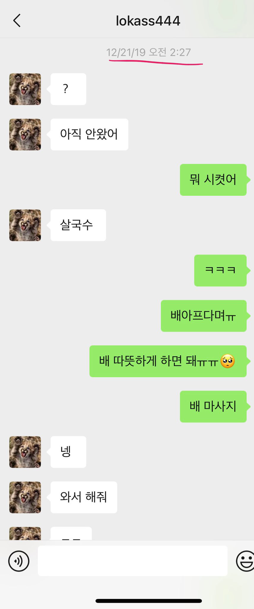 중국팬 위챗 대화내용