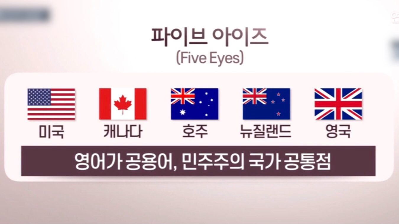 파이브 아이즈 우리말로 5개의 눈 이라는 뜻을 가지고 있는데요. 미국은 2차 대전 때 영국과 정보 교환 협정을 맺은 뒤 이후 캐나다와 호주, 뉴질랜드 등 3개국을 더 끌어들여 현재 5개국 입니다.
