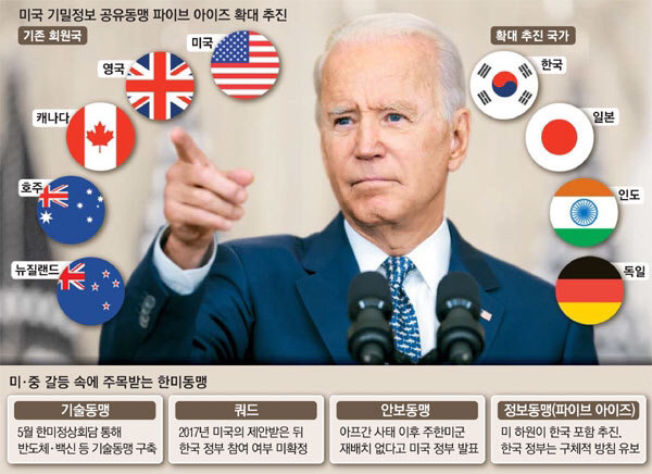 정보동맹 파이브 아이즈 한국 포함 美하원 추진
