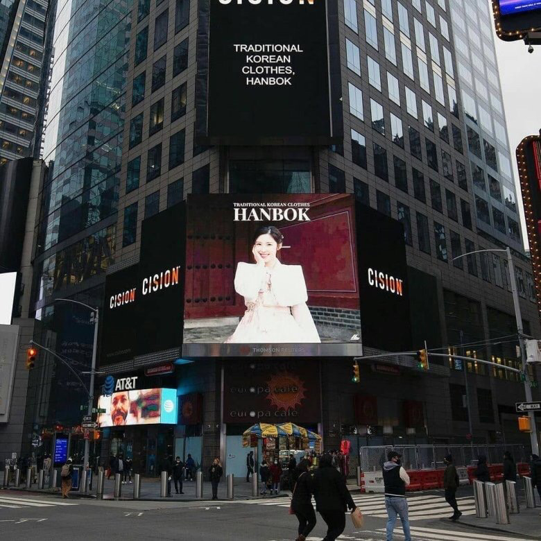 3.1절을 맞아 한복은 대한민국의 전통의상이다 라는 주제로 뉴욕 타임스퀘어 옥외광고 진행