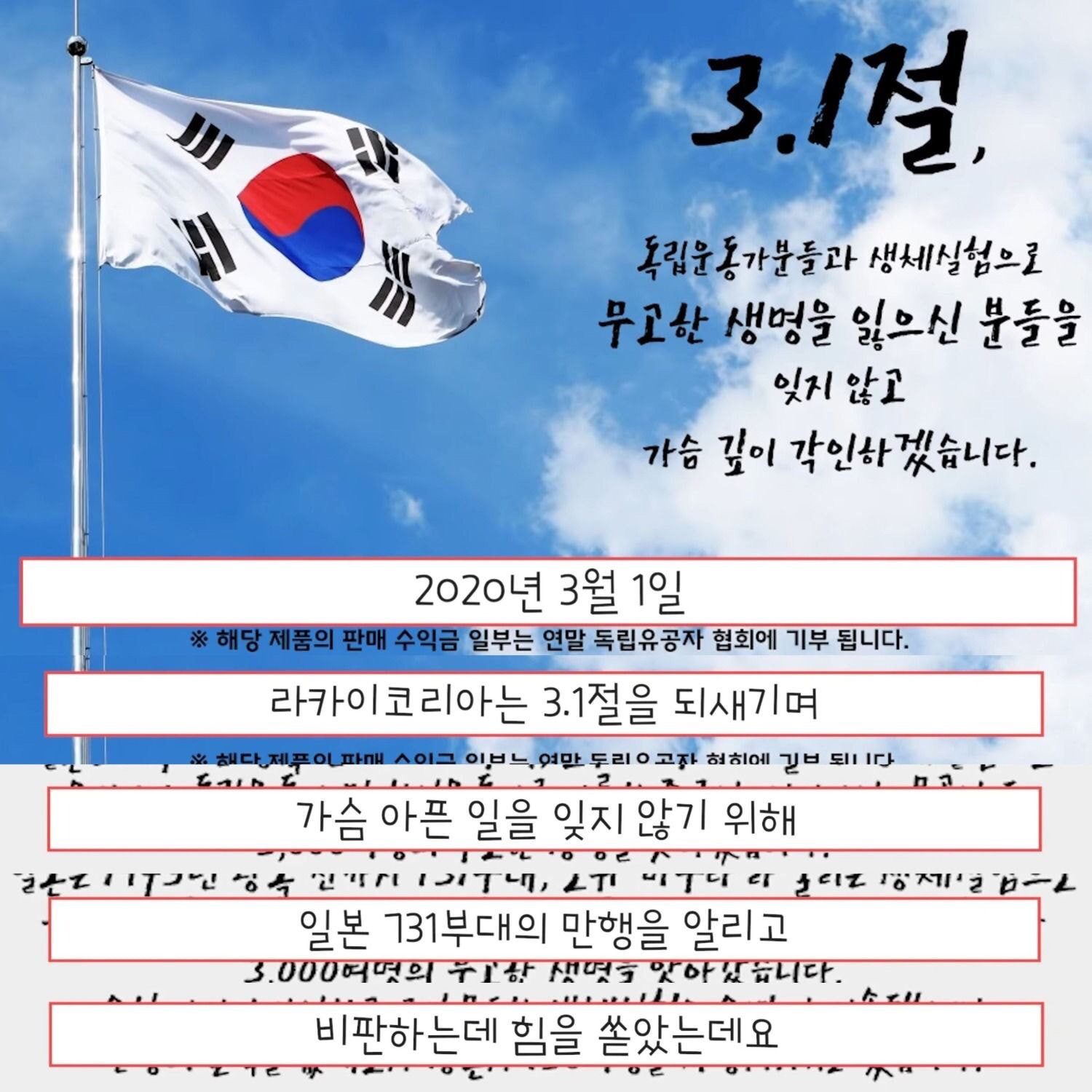2020년 3월 1일 에는 일본 731부대의 생체실험과