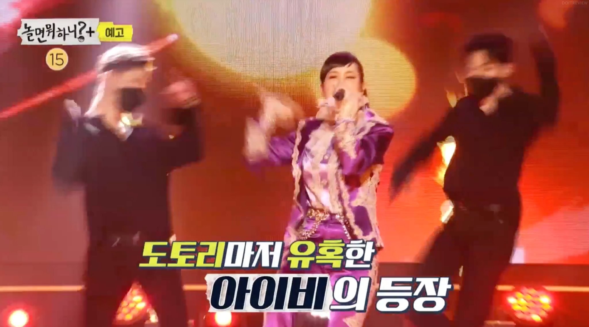 아이비는 자신의 트레이드 마크인 제가 돌아왔습니다 라는 인사로 포문을 열며 엄청난 카리스마와 가창력을 뽐내는데요. 아이비는 걸크러시 매력을 폭발시킬 유혹의 소나타 를 선보 입니다.